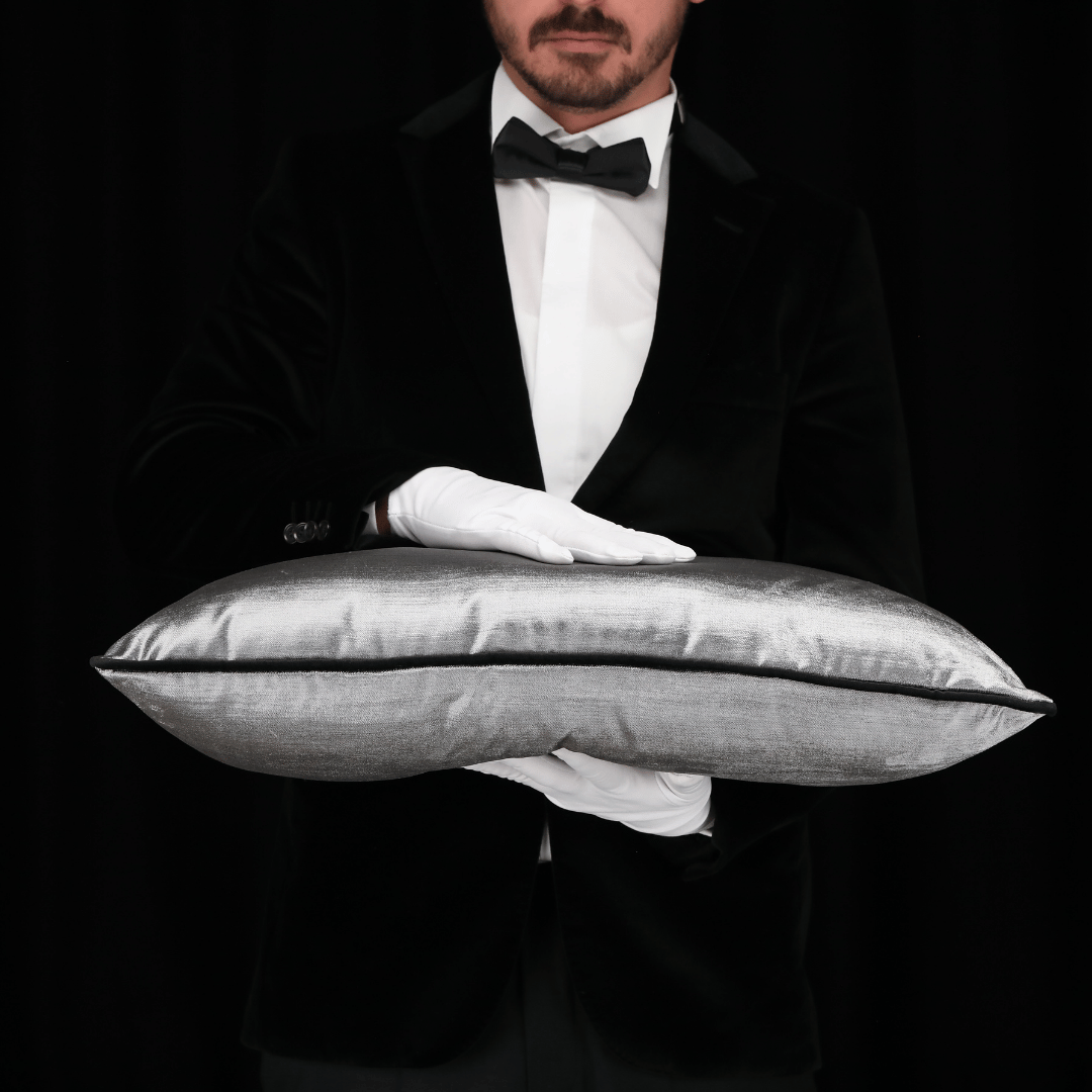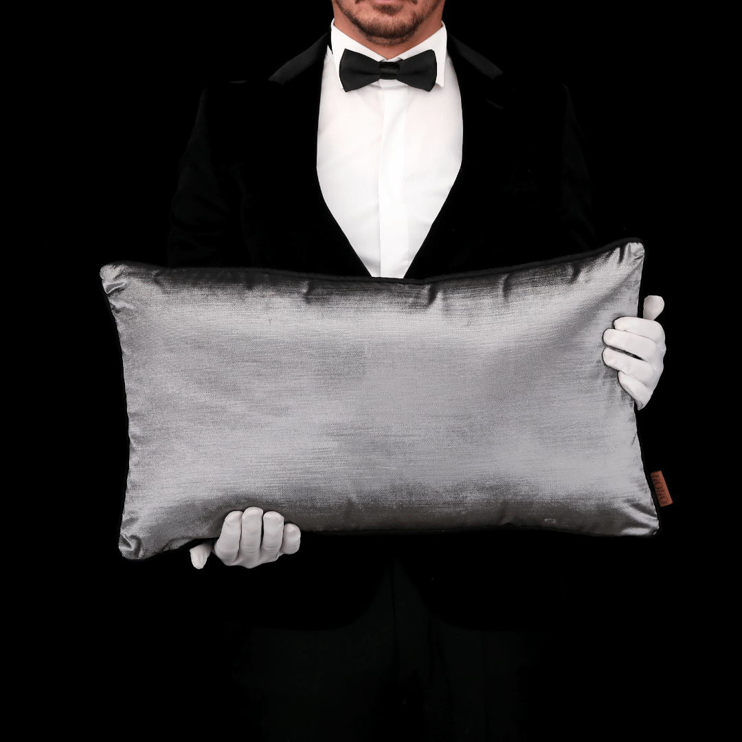 Aspen Flamlı Parlak Dokuma Kadife 35*65 Biyeli Kırlent Gri, İÇ DOLGUSU DAHİLDİR.