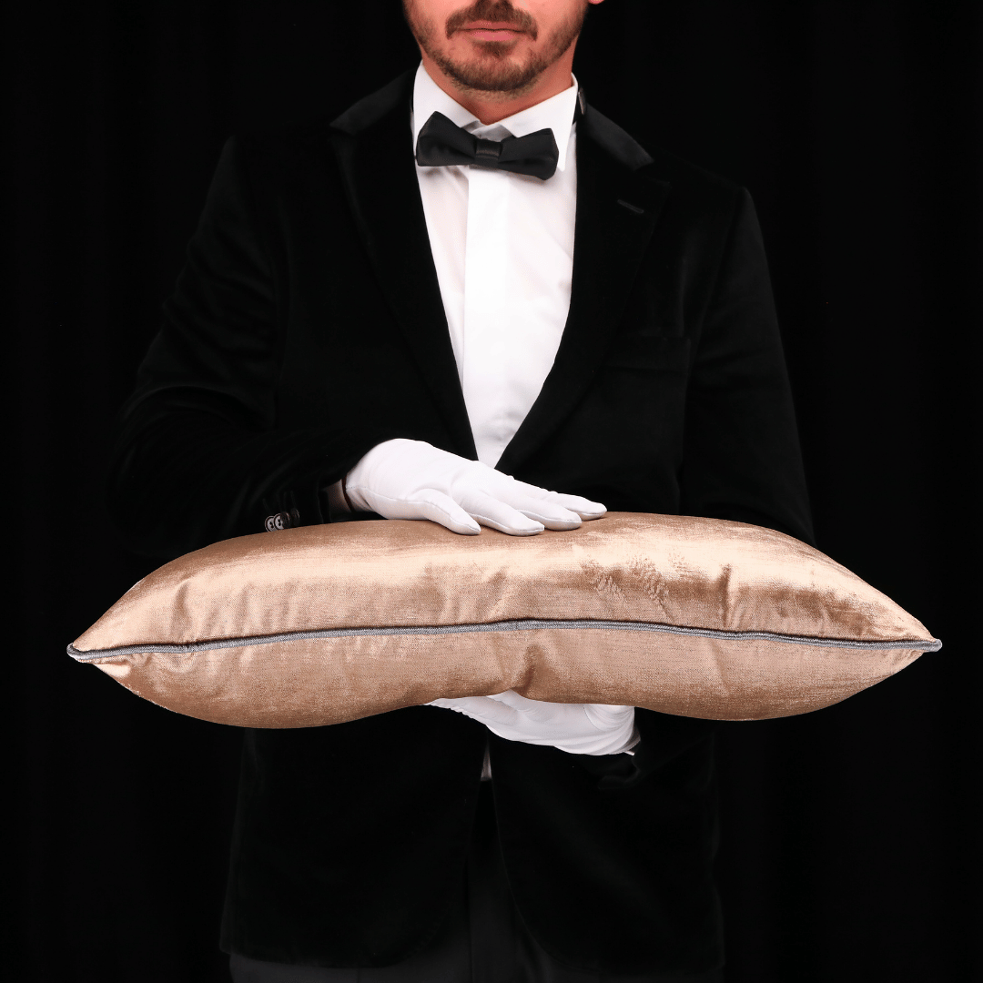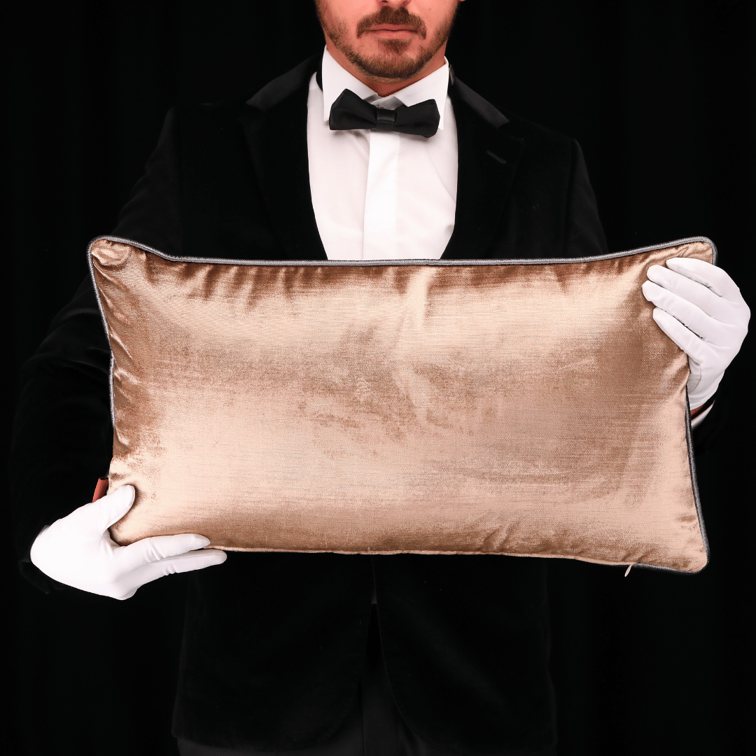 Aspen Flamlı Parlak Dokuma Kadife 35*65 Biyeli Kırlent Vizon, İÇ DOLGUSU DAHİLDİR.