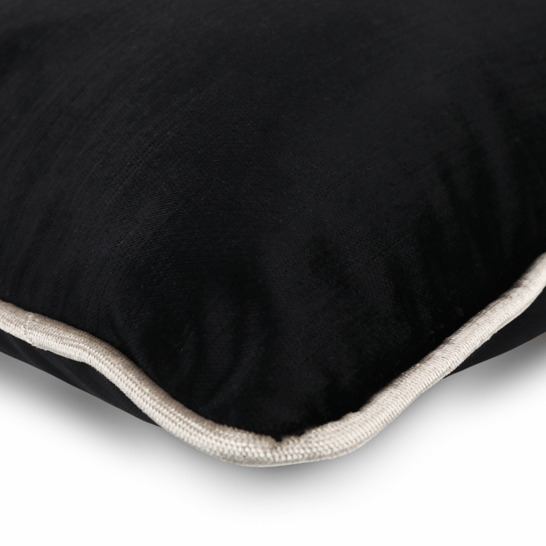 "Aspen" Zengin renk çeşitliliği ile çok seçenekli kombin olanağı sağlayan, el işçiliğinin izlerini ve zerafetin benzersiz modern çizgilerle harmanlayarak, sıcak ve sofistike mekânlar için ilham veren bir hikâyeye dönüştüren Dokuma Flamlı (Kendinden Çizgili) Parlak Yüksek Gramajlı Kadife SİYAH Döşemelik Kumaştan kenarları krem Biyeli 35*65 Dekoratif Diktörtgen Bel Kırlenti, İÇ DOLGUSU DAHİLDİR. (İç Dolgusu Ölçüsü 40*70)