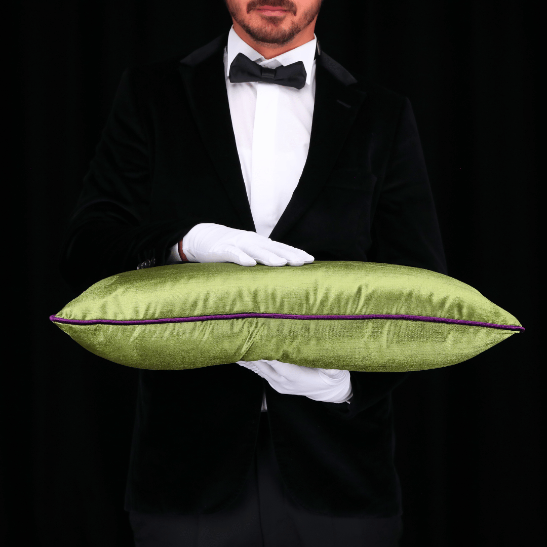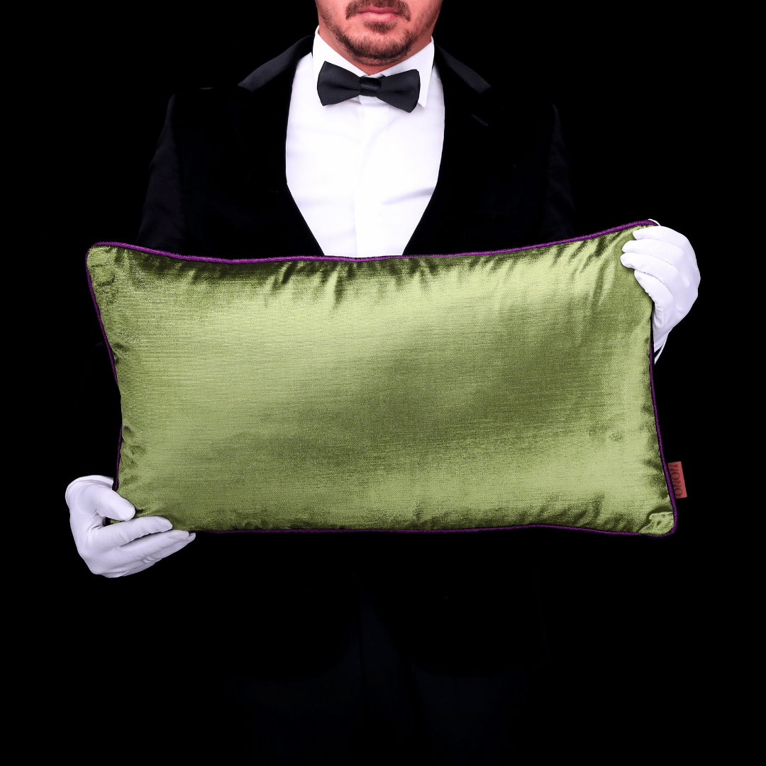 Aspen Flamlı Parlak Dokuma Kadife 35*65 Biyeli Kırlent Yeşil, İÇ DOLGUSU DAHİLDİR.