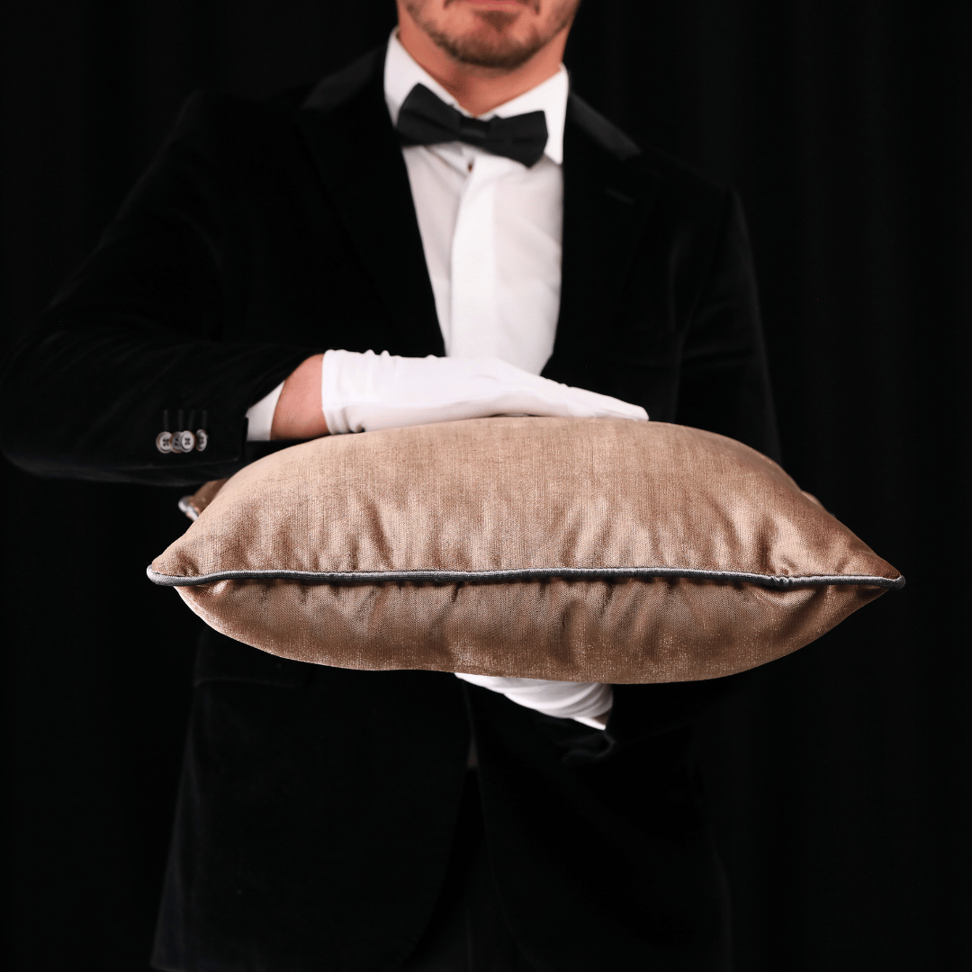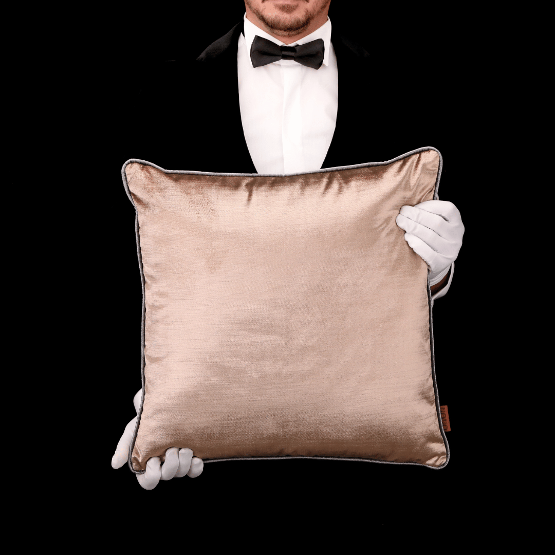 Aspen Flamlı Parlak Dokuma Kadife 50*50 Biyeli Kırlent Vizon, İÇ DOLGUSU DAHİLDİR.