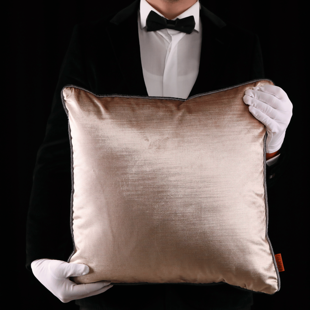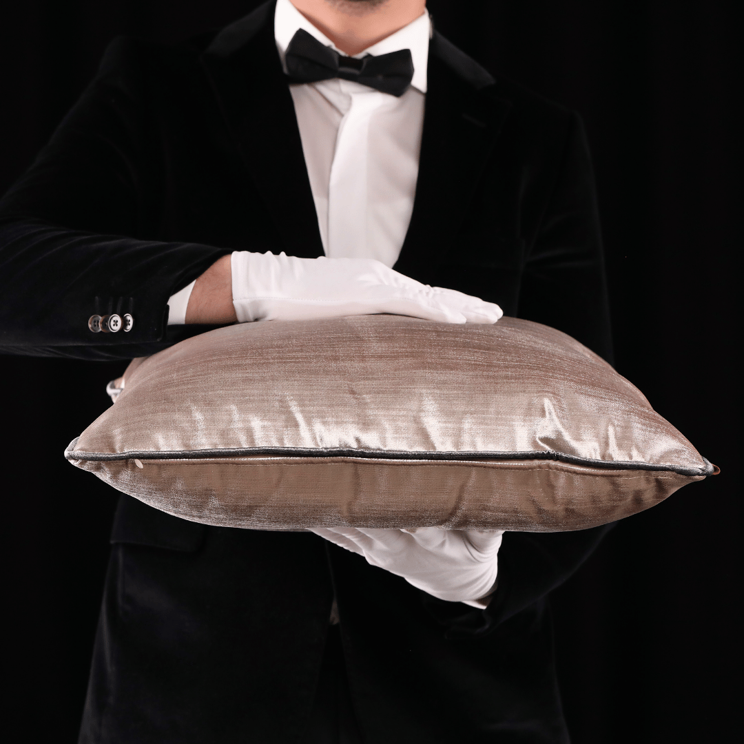 "Aspen" Zengin renk çeşitliliği ile çok seçenekli kombin olanağı sağlayan, el işçiliğinin izlerini ve zerafetin benzersiz modern çizgilerle harmanlayarak, sıcak ve sofistike mekânlar için ilham veren bir hikâyeye dönüştüren Dokuma Flamlı (Kendinden Çizgili) Parlak Yüksek Gramajlı Kadife KREM Döşemelik Kumaştan Biyeli 50*50 Dekoratif Büyük Kare Kırlent, İÇ DOLGUSU DAHİLDİR. (İç Dolgusu Ölçüsü 55*55)