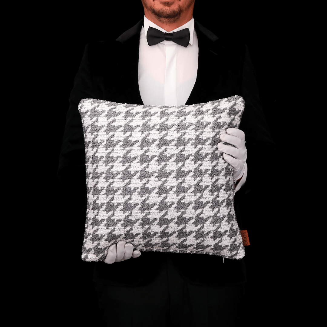 1 Adet 45*45 Baby (KTDD0914) Dokuma Bukle Modern Dokulu Kazayağı Desenli Yüksek Kalite Gri & Beyaz Döşemelik Kumaştan Düz Dikişli Dekoratif Kare Kırlent (Kumaş Bilgisi: Brandon 1016)
