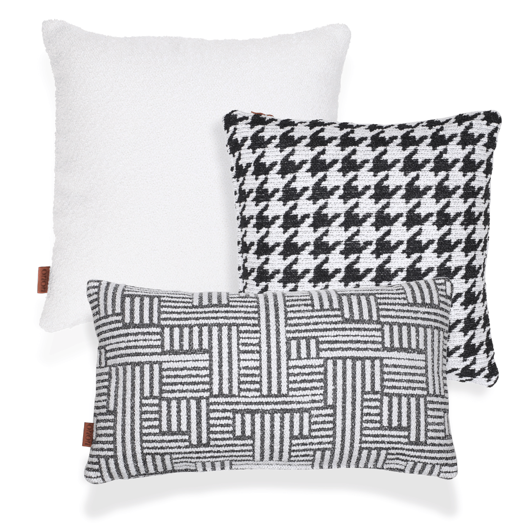 Baby & Bella, Siyah & Beyaz Bukle İÇ DOLGUSU DAHİL 3'lü Dekoratif Kırlent Seti