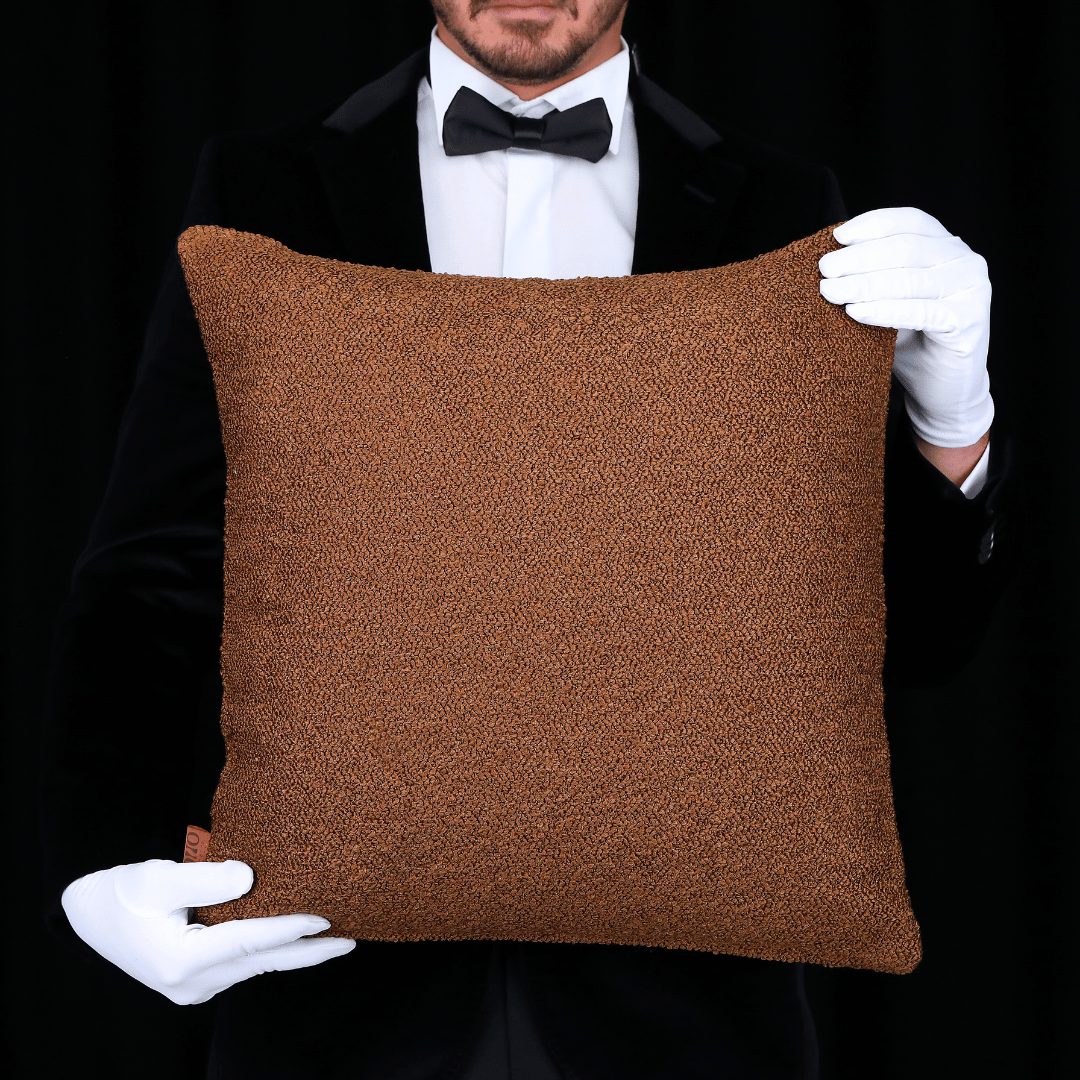 2 Adet 50*50 Bella (KTDD1121) Dokuma Bukle Modern Dokulu Düz Yüksek Kalite Chester Kahve Döşemelik Kumaştan Düz Dikişli Dekoratif Büyük Kare Kırlent (Kırlent bilgisi: Blazer 1040)