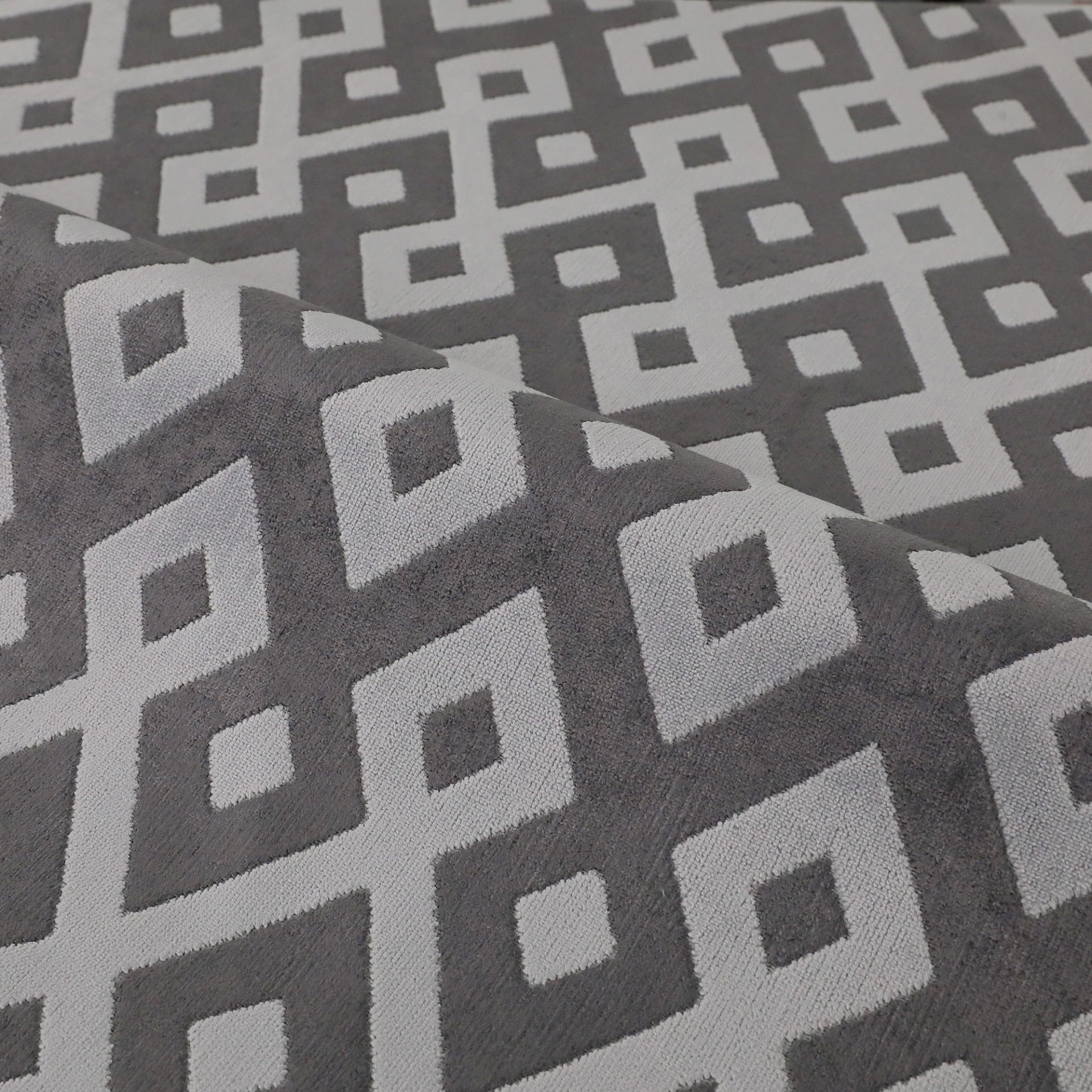 Modern Geometrik Jakar: Belize serisi, fotoğrafınızda görülen (baklava/eşkenar dörtgen ve karelerden oluşan) gibi güçlü, tekrarlayan geometrik jakar deseniyle modern dekorasyonun nabzını tutar. Bu desenler, mobilyalarınıza derinlik ve boyut katarak mekana anında dinamizm getirir.