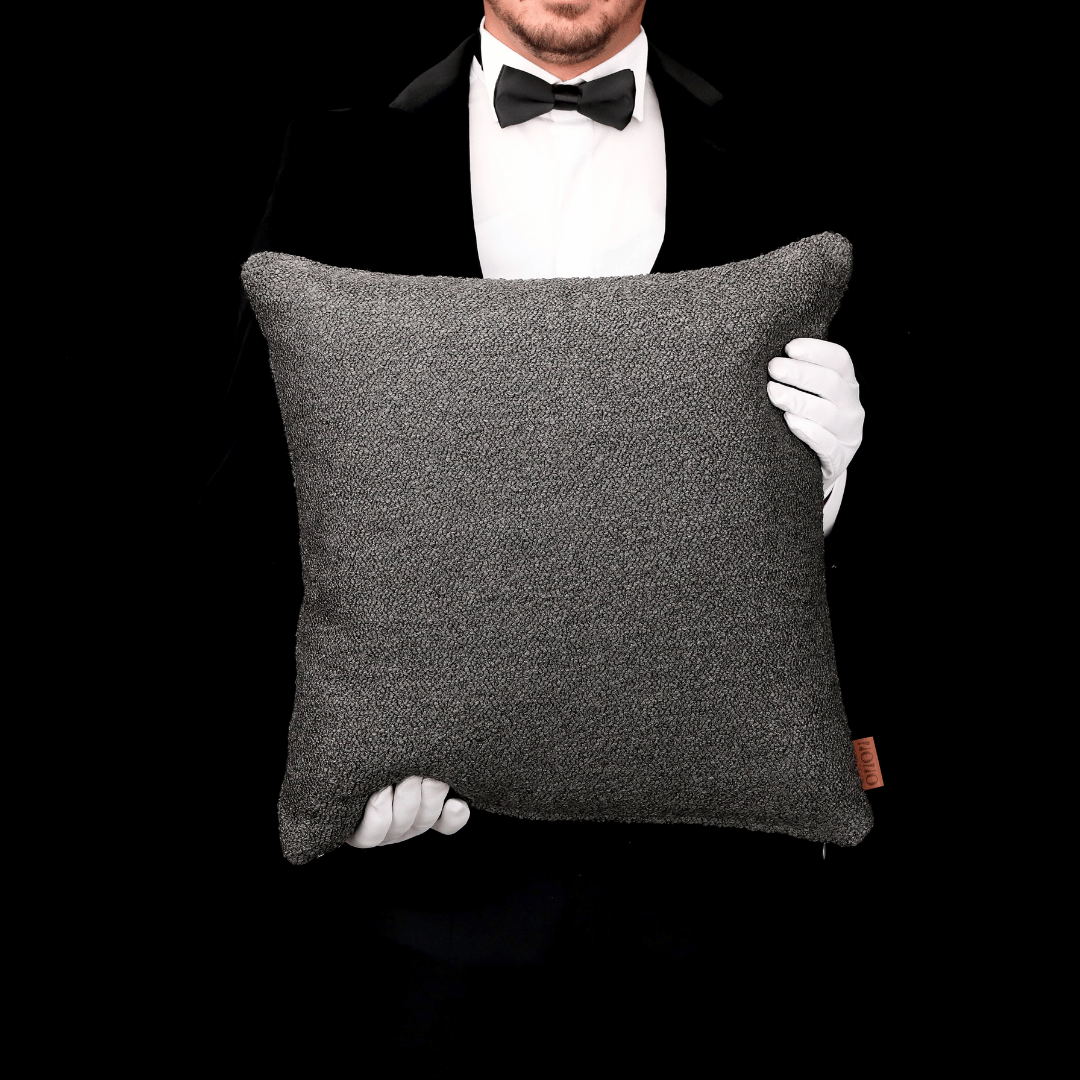 "Bella" Modern mekanlar için deseni ve renkleriyle benzersiz bir şekilde ilham veren Bukle Dokulu Dokuma Antrasit Düz Yüksek Kalite Döşemelik Kumaştan her iki yüzünde de aynı kumaş kullanılan ve bu sayede size kolaylık katacak 50*50 Dekoratif Büyük Kare Kırlent, İÇ DOLGUSU DAHİLDİR. (İç Dolgusu Ölçüsü 55*55)