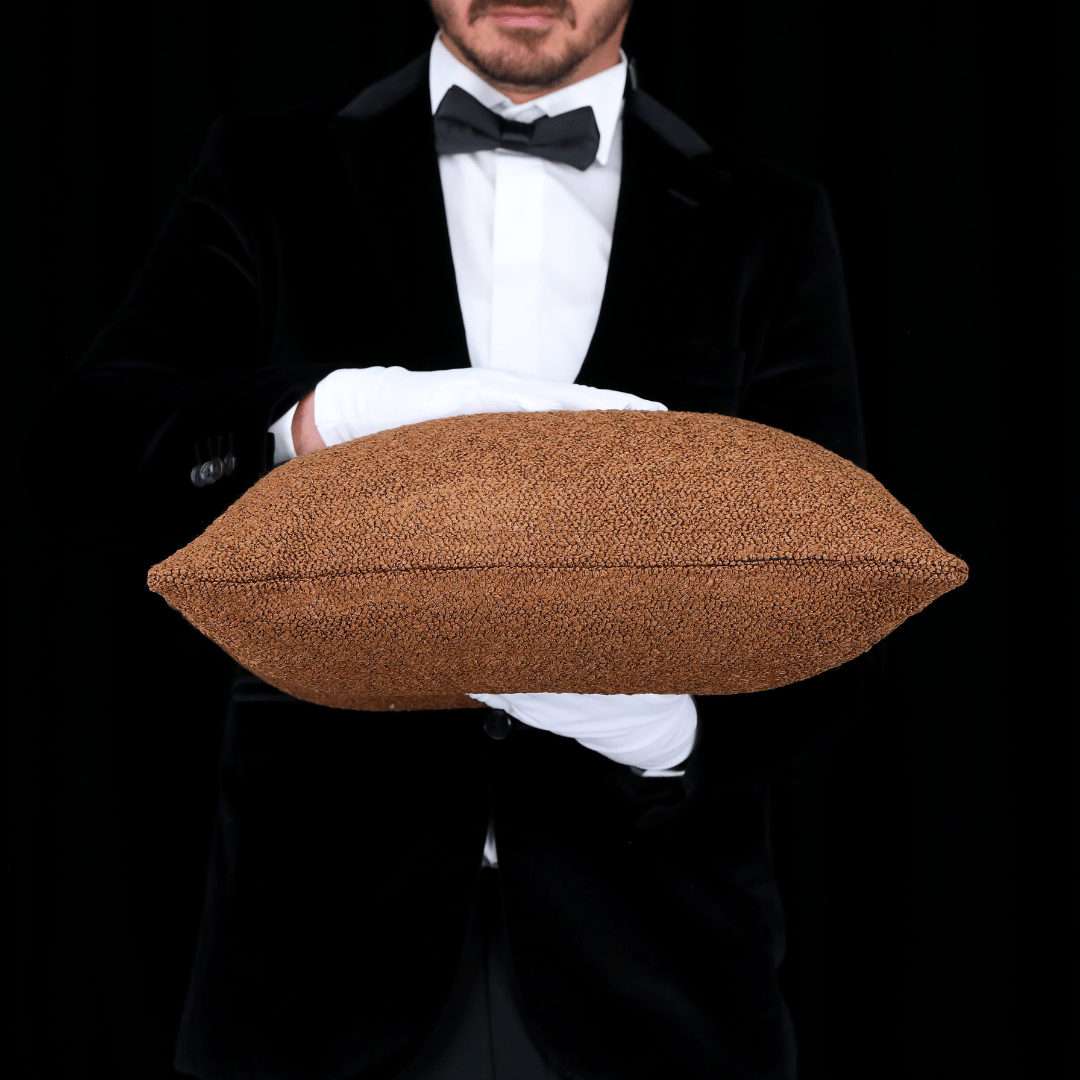 "Bella" Modern mekanlar için deseni ve renkleriyle benzersiz bir şekilde ilham veren bukle dokulu dokuma kahve düz yüksek kalite döşemelik kumaştan her iki yüzünde de aynı kumaş kullanılan ve bu sayede size kolaylık katacak Dekoratif 50*50 Büyük Kare Kırlent, İÇ DOLGUSU DAHİLDİR. (İç Dolgusu Ölçüsü 55*55)