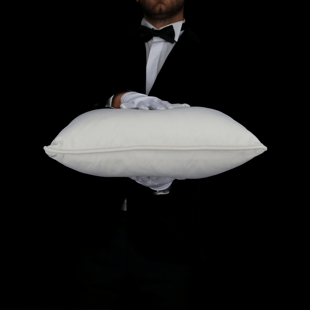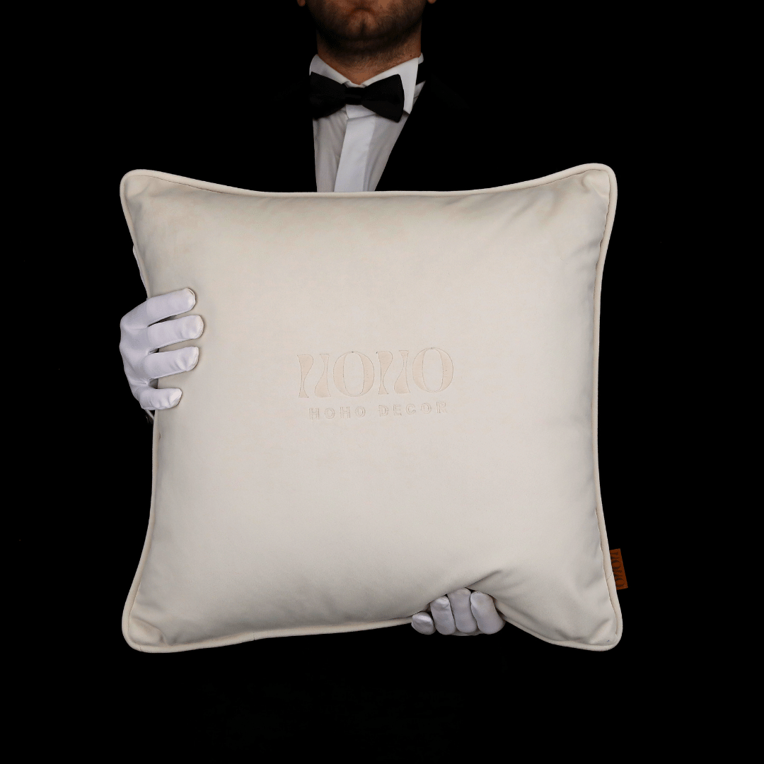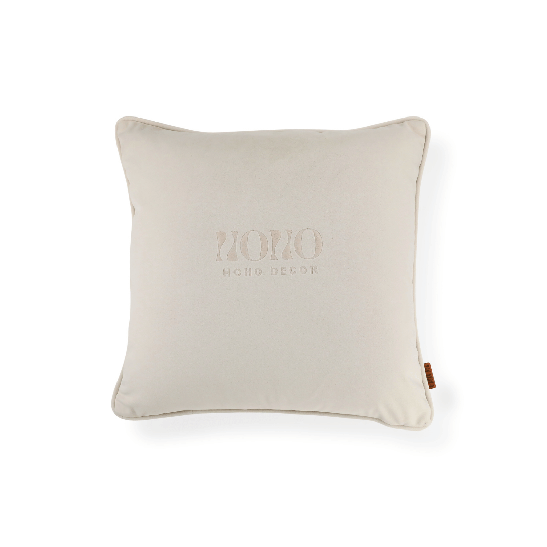 Bob Krem Mat Düz Kadife Yumuşak Tuşeli 50*50 Biyeli Kırlent, İÇ DOLGUSU DAHİLDİR.