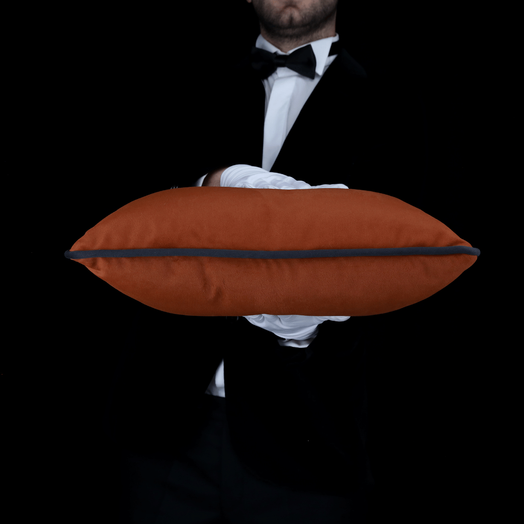 Mat Kadife Ekstra Soft Yumuşak Tuşeli Sıvı İticili TARÇIN Döşemelik Kumaştan Biyeli 50*50 Dekoratif Büyük Kare Kırlent, İç Dolgusu Dahildir. (İç Dolgu Ölçüsü 55*55)