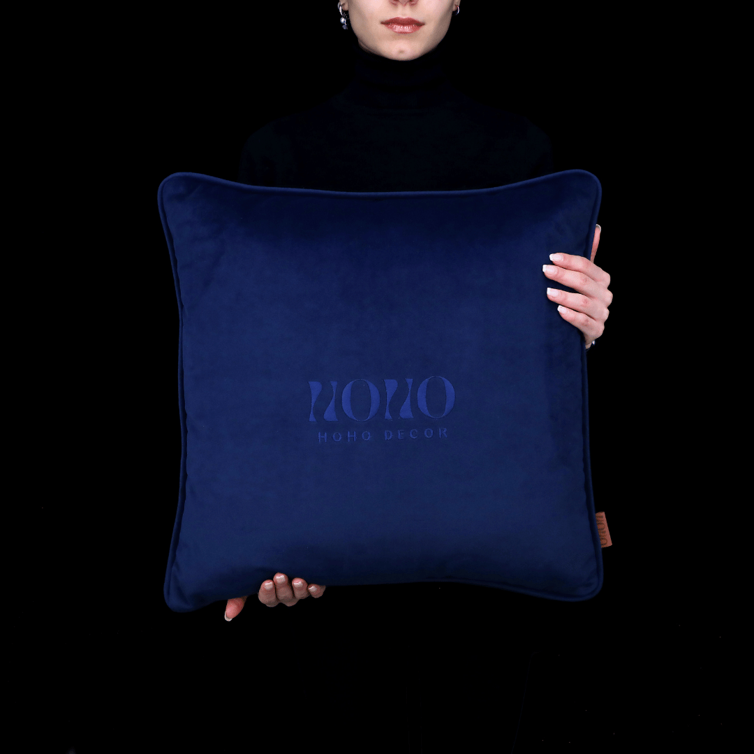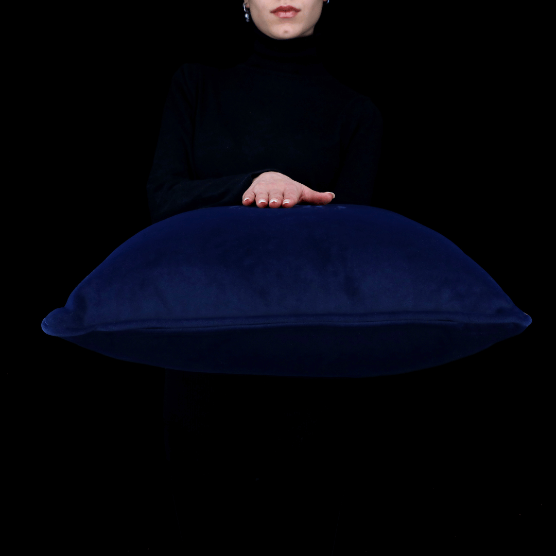 "Bob" Lacivert Mat Düz Kadife Yumuşak Tuşeli 50*50 Biyeli Kırlent, İç Dolgusu Dahildir.
