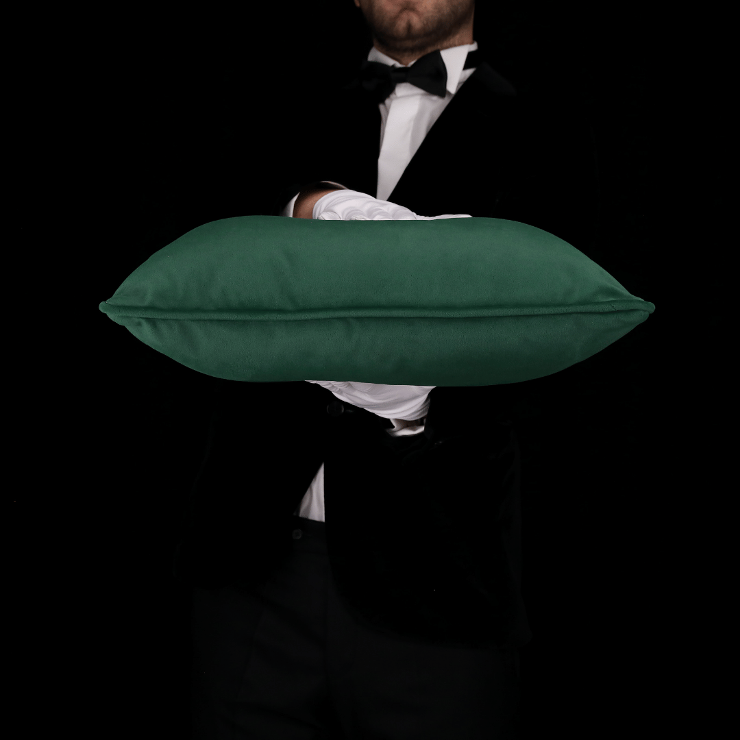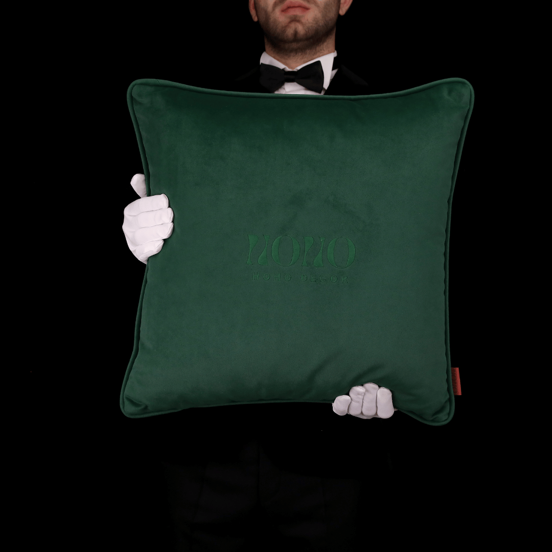 Bob Yeşil Mat Düz Kadife Yumuşak Tuşeli 50*50 Biyeli Kırlent, İç Dolgusu Dahildir.