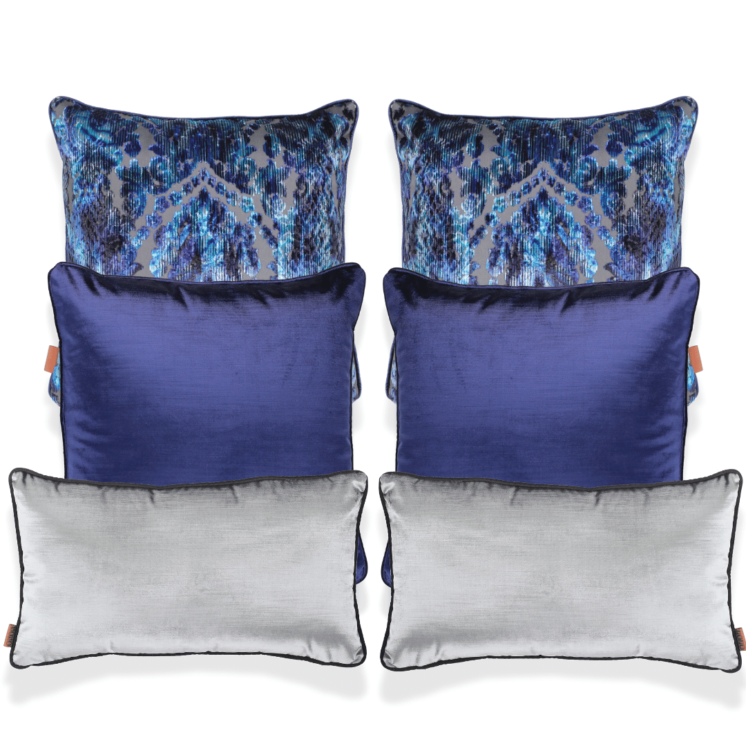 Celina & Aspen Lacivert & Gri Kadife İÇ DOLGUSU DAHİL 6'lı Dekoratif Kırlent Seti (Yataklar ve 220cm üzeri koltuklar için uygundur!)