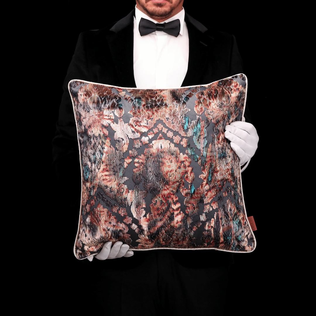 Celina Damask Renkli Kadife Kabartmalı 50*50 Biyeli Kırlent Çok Renkli, İÇ DOLGUSU DAHİLDİR.