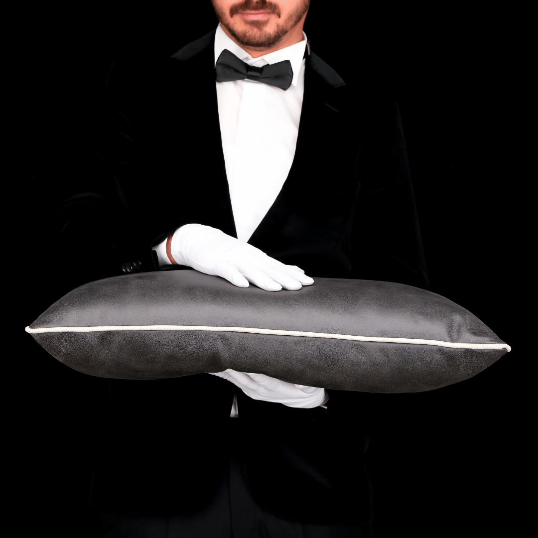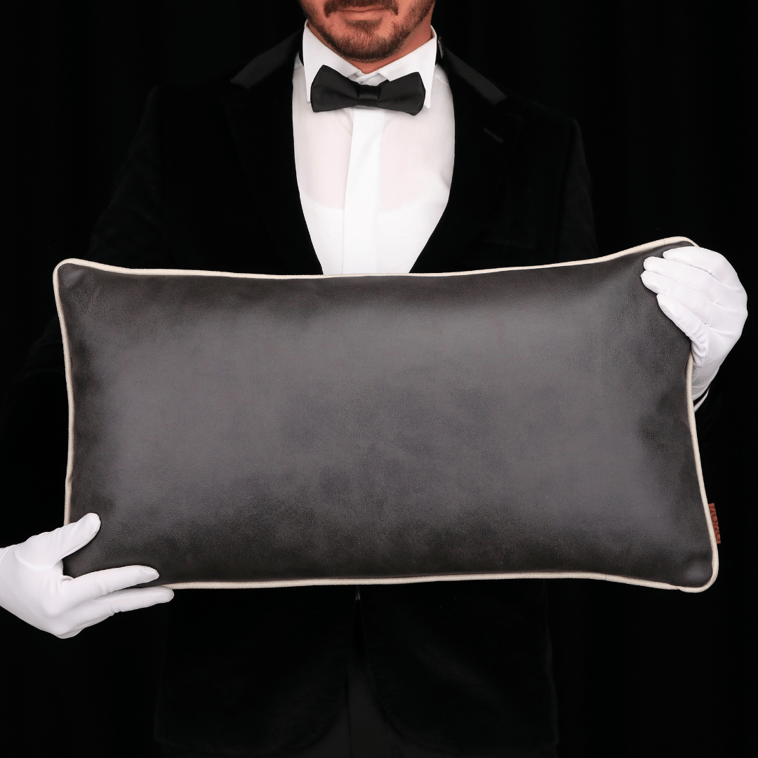 Country İtalyan Nubuk Kendinden Desenli 35*65 Biyeli Kırlent Antrasit, İÇ DOLGUSU DAHİLDİR.