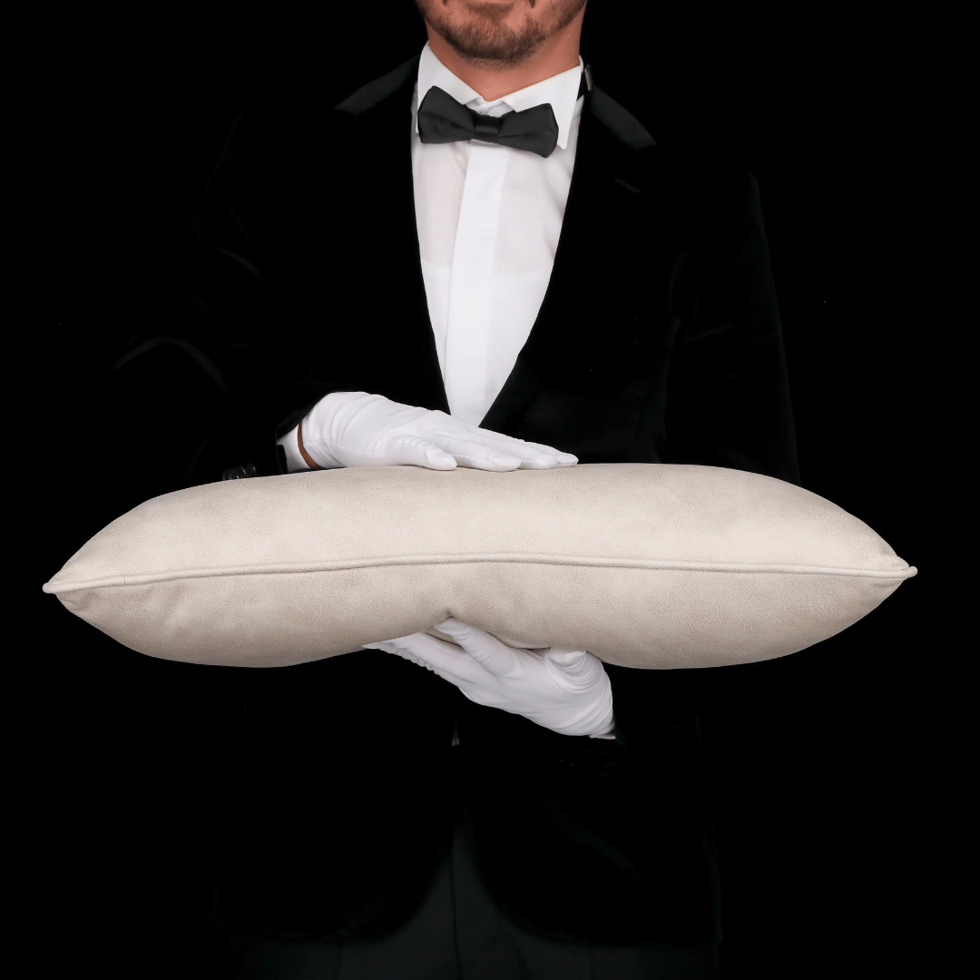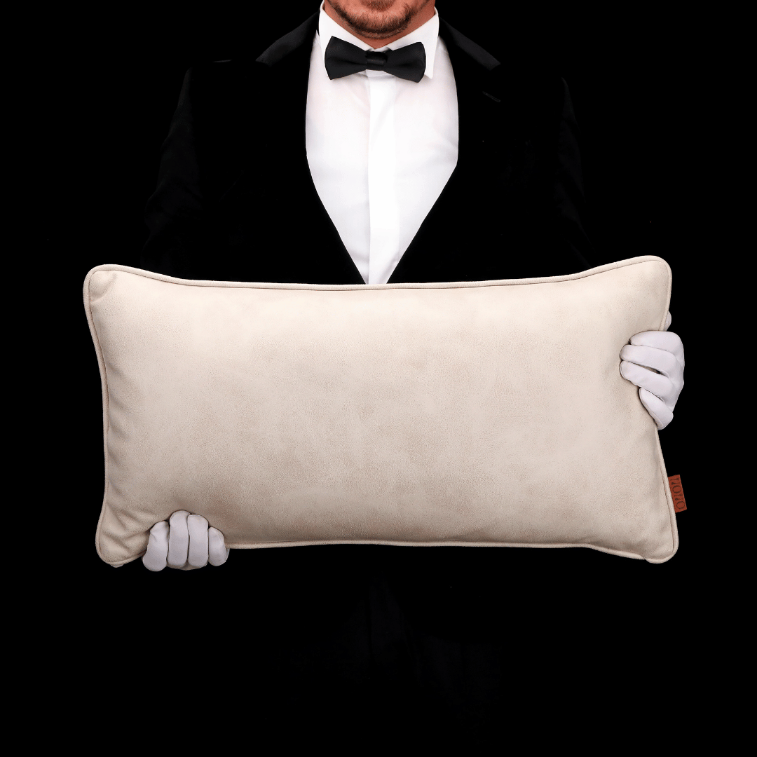 Country İtalyan Nubuk Kendinden Desenli 35*65 Biyeli Kırlent Krem, İÇ DOLGUSU DAHİLDİR.