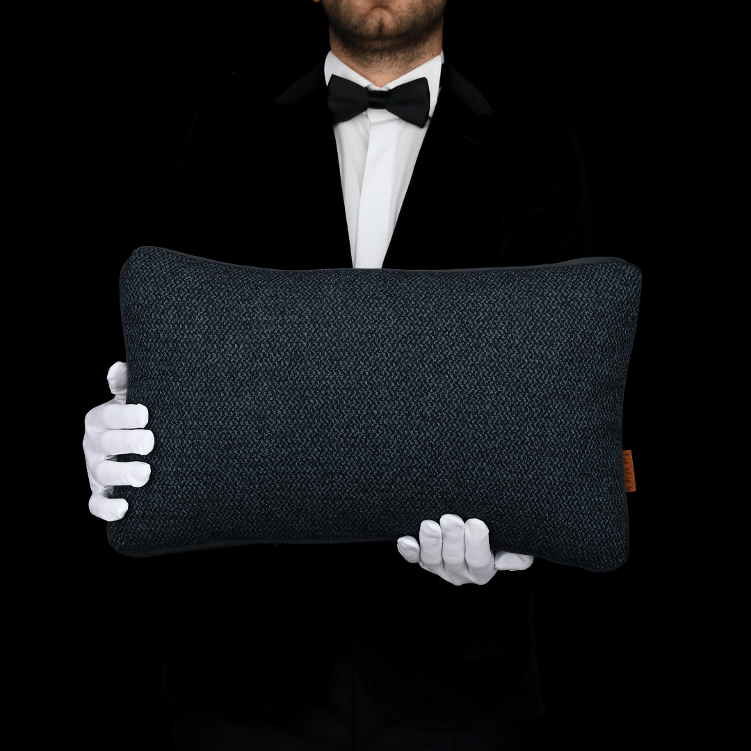 Dokuma Şönil Bukle Zigzag Desenli Koyu Gri & Siyah Döşemelik Kumaştan Kenarları 4cm Mat Kadife (Bob Kumaşı Brabbu 708) Façalı 30*50*4 Dekoratif Küçük Bel Kırlenti, İç Dolgusu Dahildir. (İç Dolgu Ölçüsü 35*55*5)