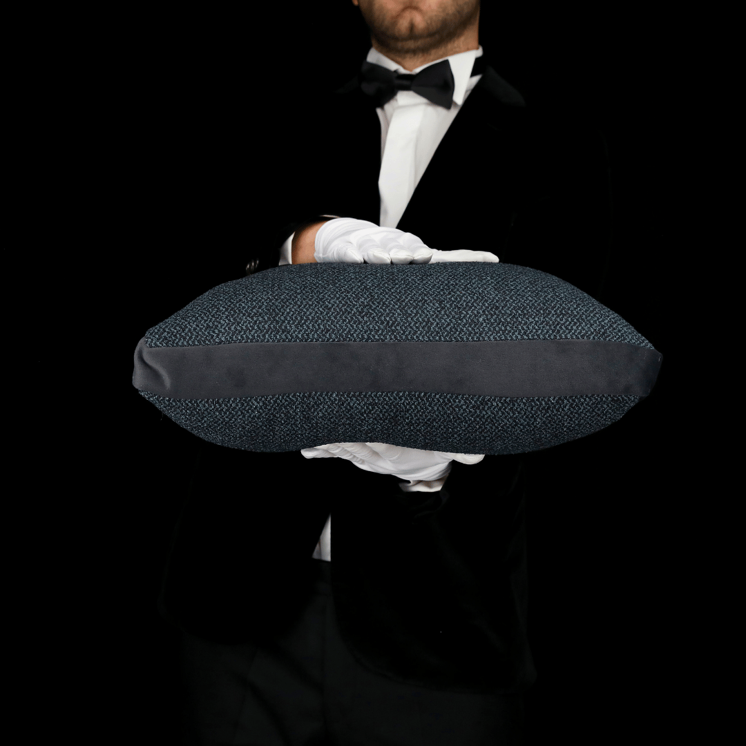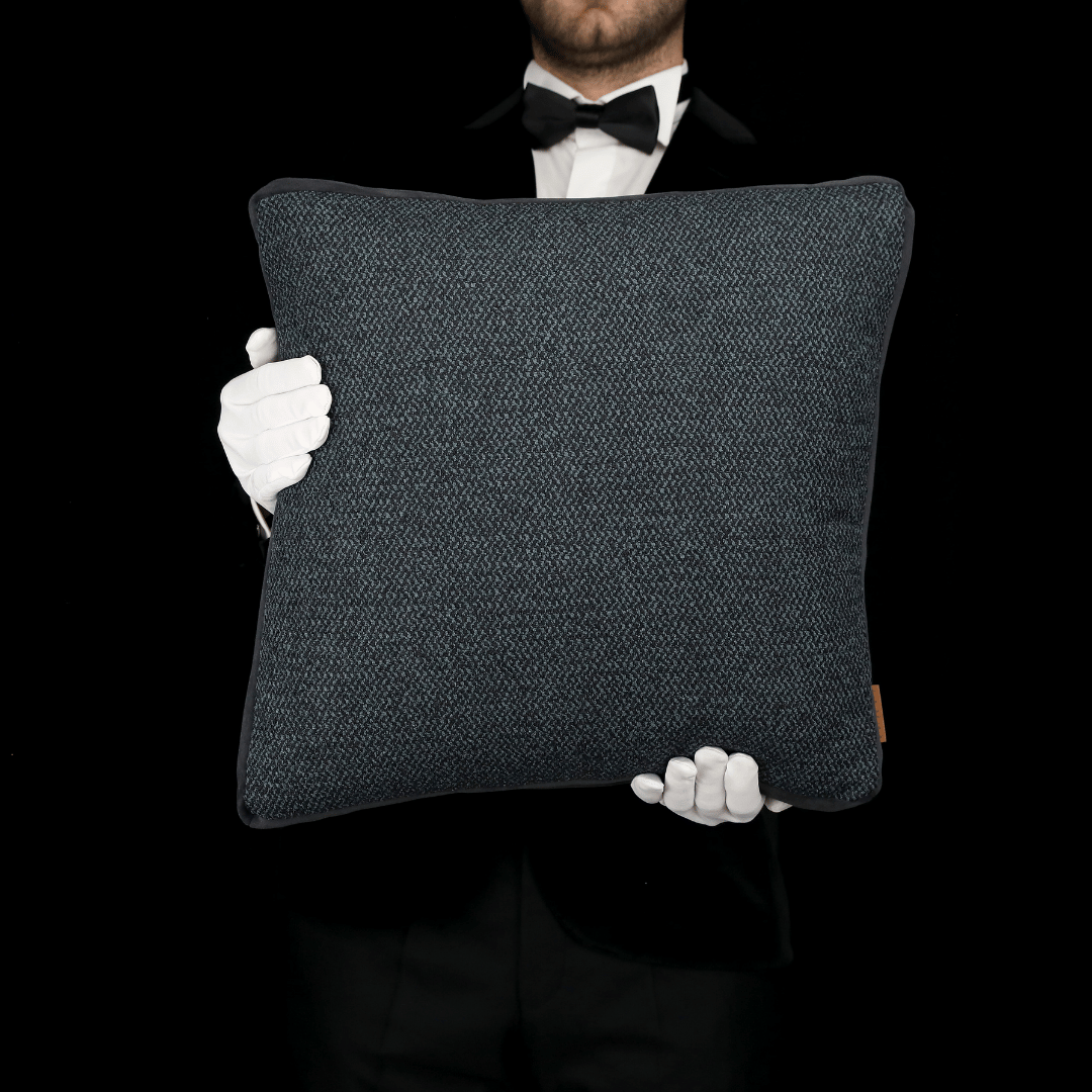 Dokuma Şönil Bukle Zigzag Desenli Koyu Gri & Siyah Döşemelik Kumaştan Kenarları 5cm Mat Kadife (Bob Kumaşı Brabbu 708) Façalı 45*45*5 Dekoratif Kare Kırlent, İç Dolgusu Dahildir. (İç Dolgu Ölçüsü 50*50*7)