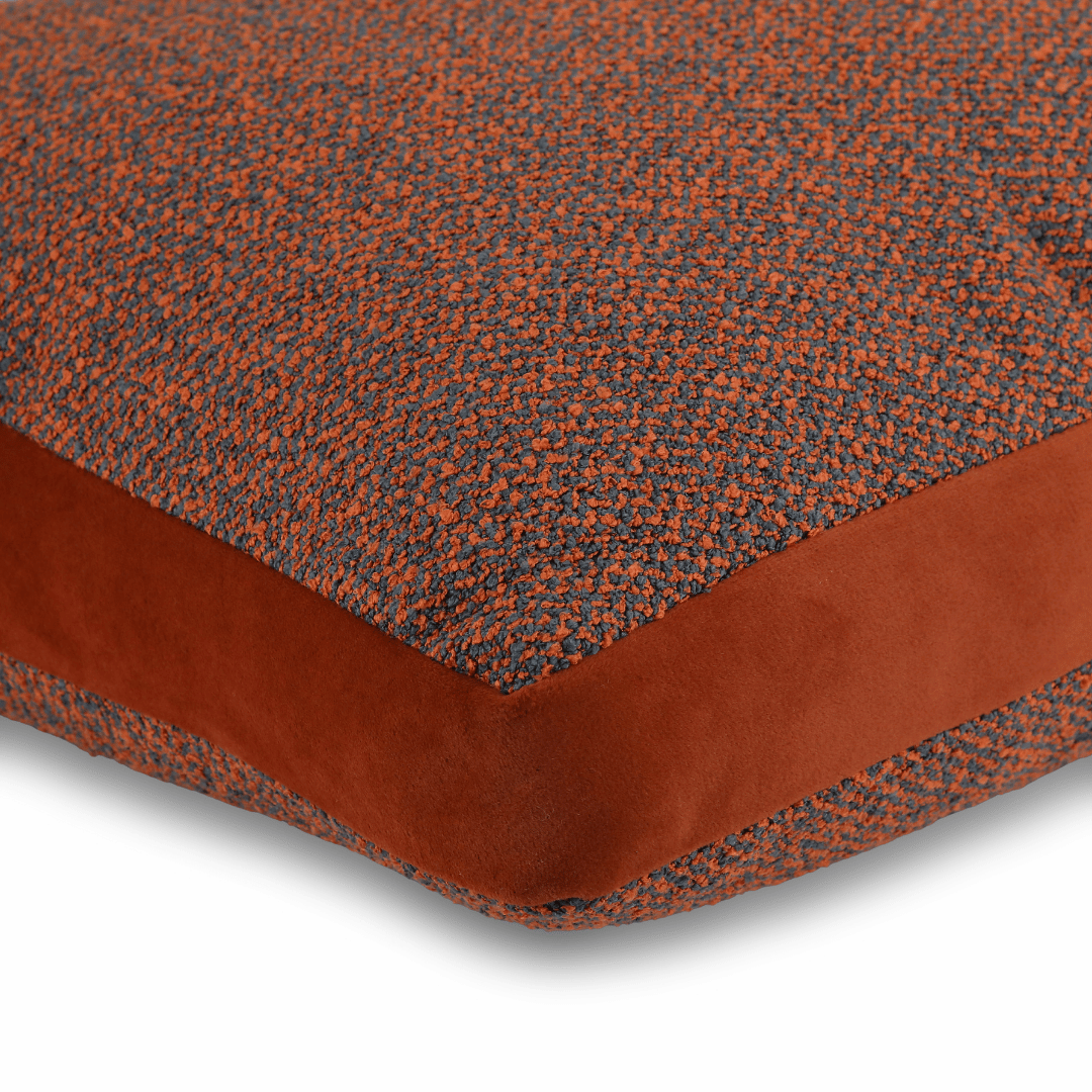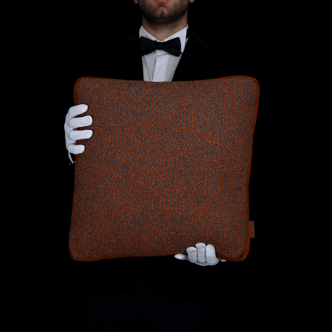 Dokuma Şönil Bukle Zigzag Desenli Tarçın & Koyu Gri Döşemelik Kumaştan Kenarları 5cm Mat Kadife (Bob Kumaşı) Façalı 45*45*5 Dekoratif Kare Kırlent, İç Dolgusu Dahildir. (İç Dolgu Ölçüsü 50*50*7)