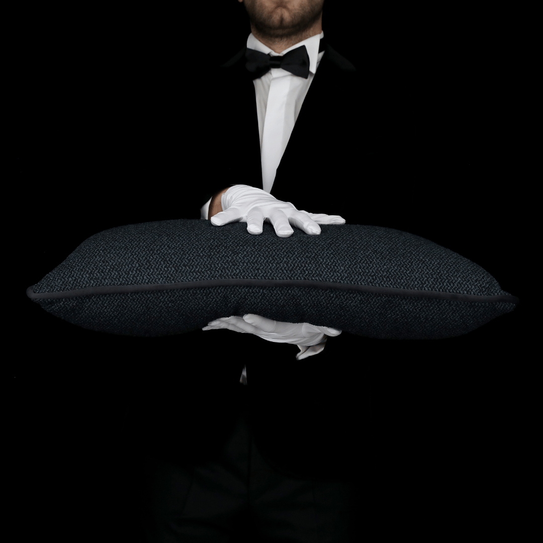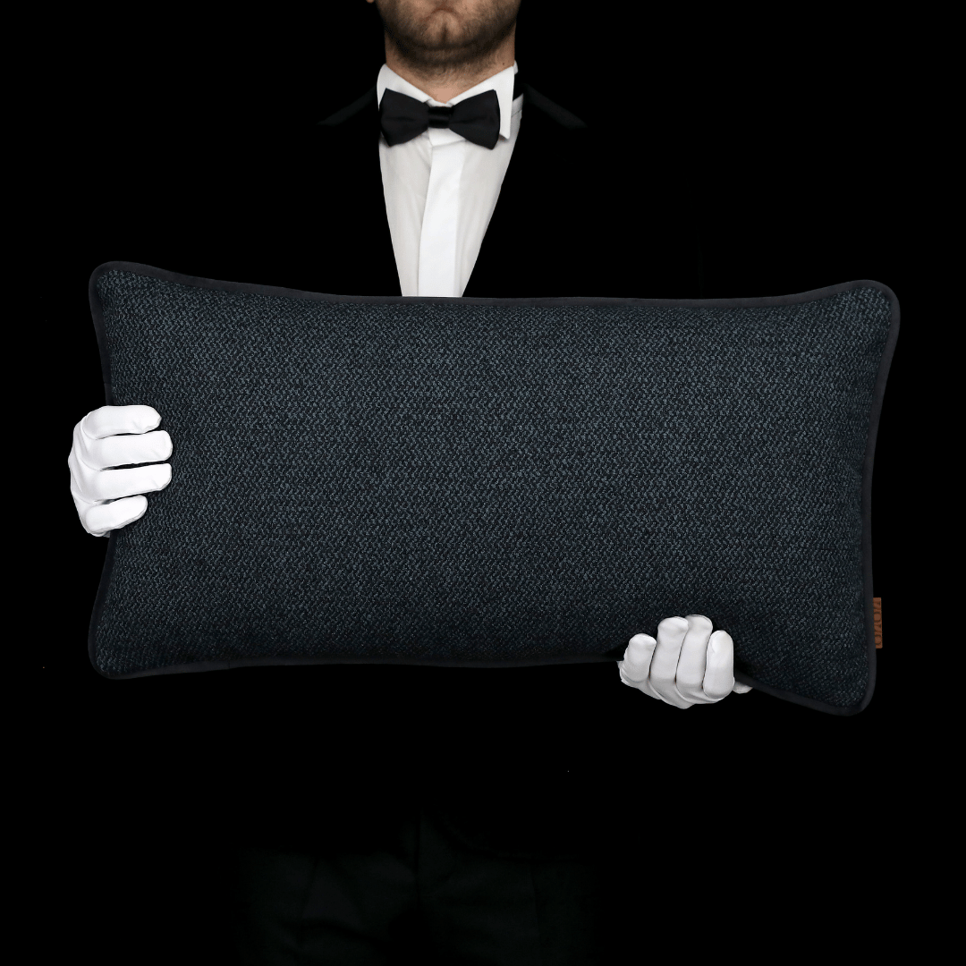 Dokuma Koyu Gri & Siyah Şönil Bukle Zigzag Desenli Döşemelik Kumaştan Biyeli 35*65 Dekoratif Diktörtgen Bel Kırlenti, İç Dolgusu Dahildir. (İç Dolgu Ölçüsü 40*70)