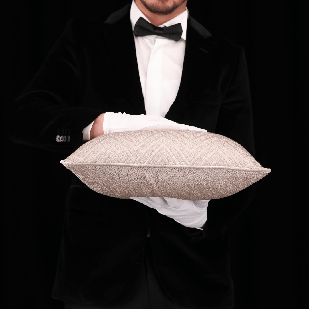 Fiona Saten Kabartmalı Zigzag Desenli 45*45 Biyeli Kırlent Vizon, İÇ DOLGUSU DAHİLDİR.