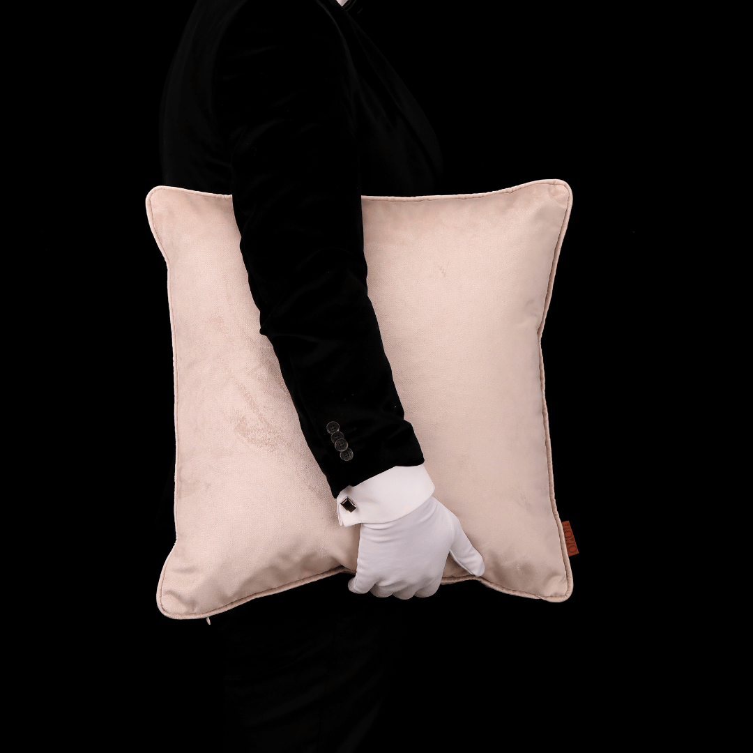 Modern Yarımat Dokuma Kadife Vizon Döşemelik Kumaştan Biyeli 50*50 Dekoratif Büyük Kare Kırlent, İç Dolgusu Dahildir. (İç Dolgu Ölçüsü 55*55)