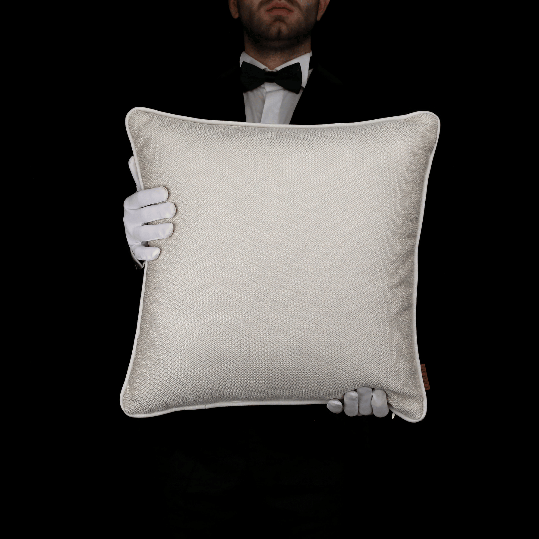 Lara Bej Modern Dokulu Keten 50*50 Biyeli Kırlent, İç Dolgusu Dahildir.