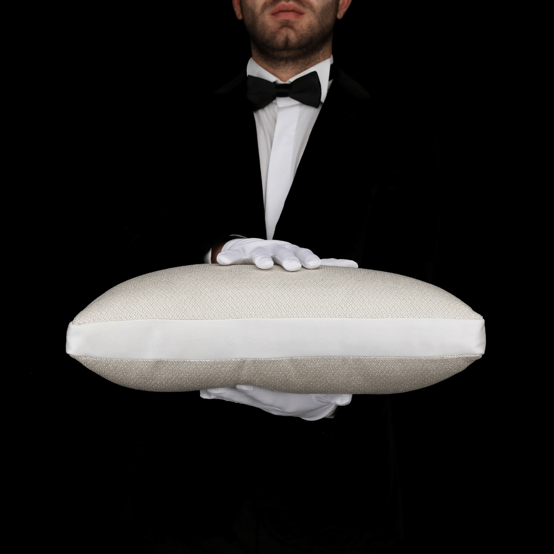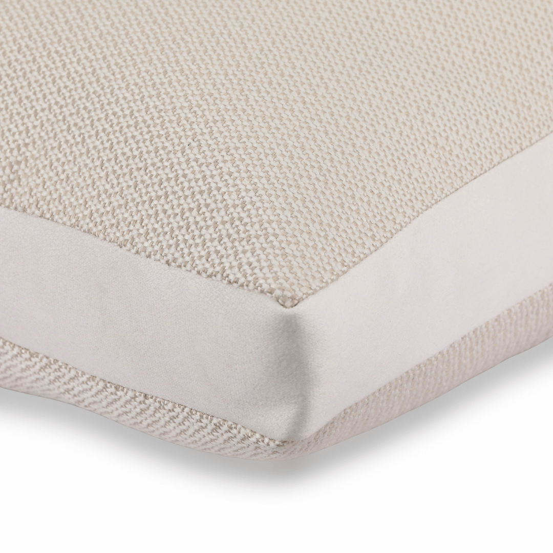 Ön ve Arka Yüzü Dokuma Modern Dokulu Bej Keten Ara Façası Sedefli Bej Nubuk Döşemelik Kumaştan Façalı Dekoratif Küçük Bel Kırlenti