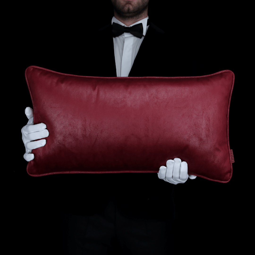 Lara Kırmızı Modern Keten & Nubuk Kombin 35*65 Biyeli Kırlent, İç Dolgusu Dahildir.