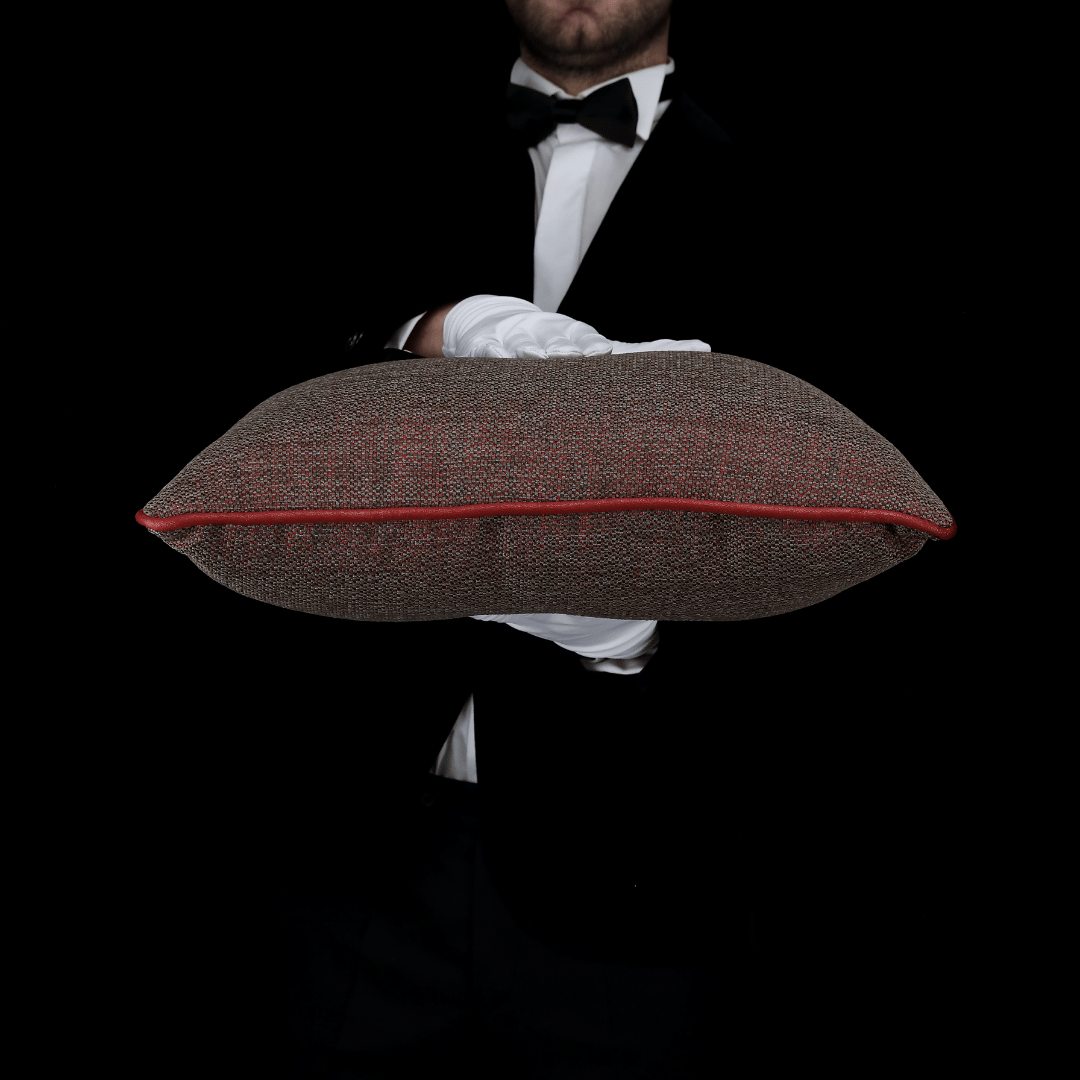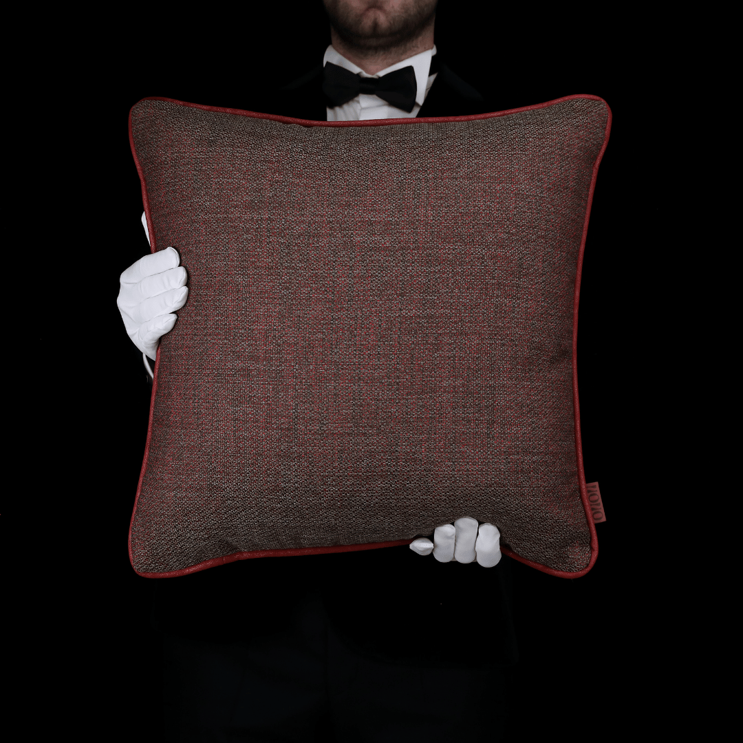 Keten ve nubuk dünyasını mükemmel bir renk ve ahenk uyumuyla birleştiren, modern tasarımın yeniliklerinden ilham alan Leo Keten ve Lebron Nubuk kumaşlarından elde ettiğimiz bambaşka bir koleksiyon Dokuma Modern Dokulu Kırmızı & Koyu Gri Keten Döşemelik Kumaştan Kenarları Kırmızı Nubuk Biyeli 50*50 Dekoratif Büyük Kare Kırlent, İç Dolgusu Dahildir. (İç Dolgu Ölçüsü 55*55)