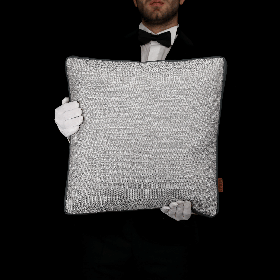2 Adet 50*50 Nara (KTB06131) Modern Dokulu Sedefli Gri Nubuk Döşemelik Kumaştan Biyeli Dekoratif Büyük Kare Kırlent