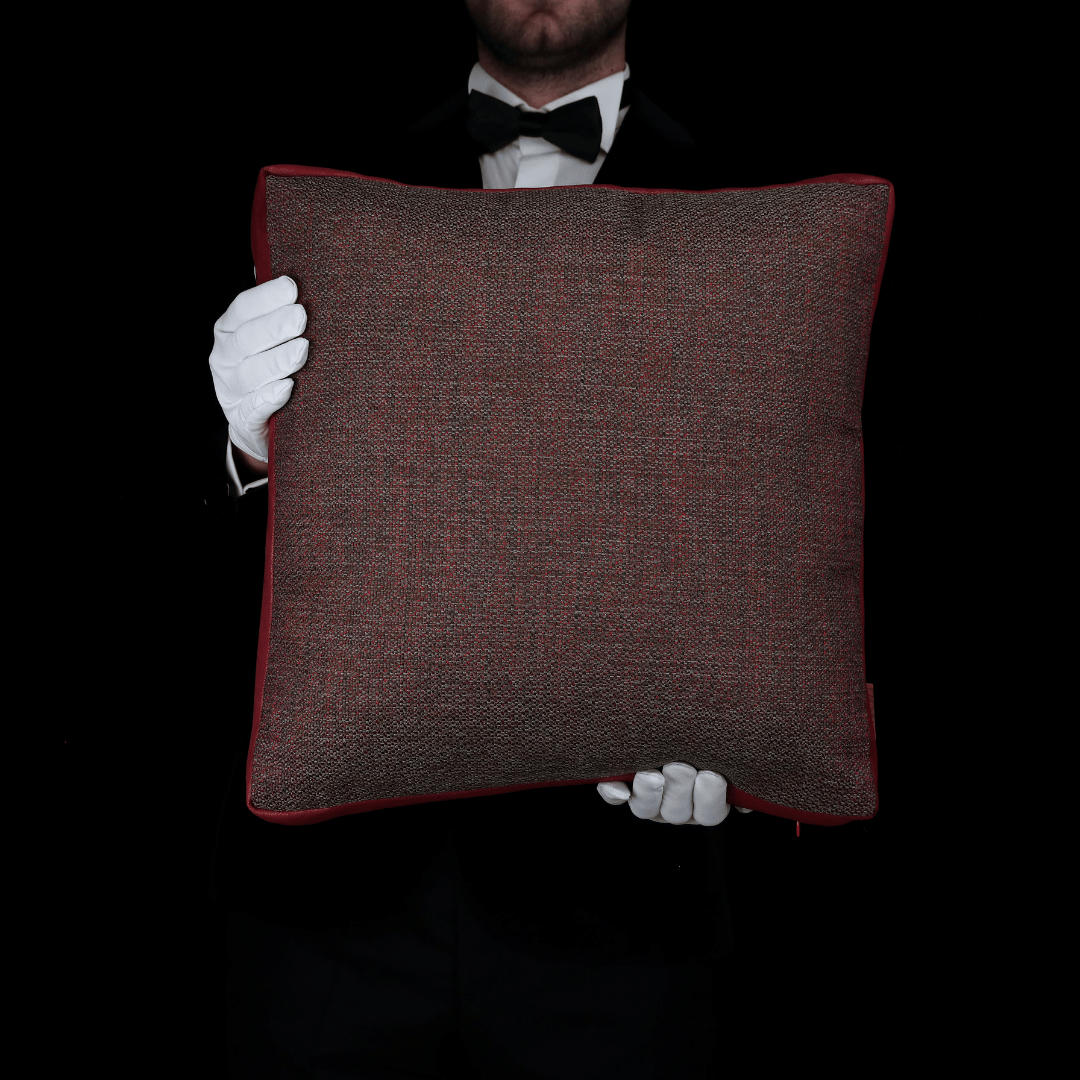 2 Adet 45*45 Lara (KTF02132) Dokuma Modern Dokulu Kırmızı & Koyu Gri Keten Döşemelik Kumaştan Kenarları 5cm Kırmızı Nubuk Façalı Dekoratif Büyük Kare Kırlent &