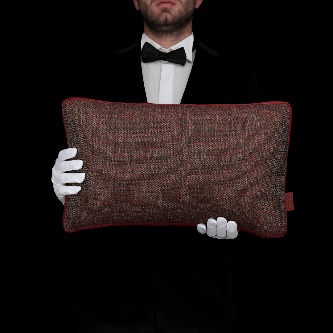 1 Adet 30*50 Lara (KTF05133) Ön ve Arka Yüzü Dokuma Modern Dokulu Kırmızı & Koyu Gri Keten Ara Façası Sedefli Kırmızı Nubuk Döşemelik Kumaştan Façalı Dekoratif Küçük Bel Kırlenti