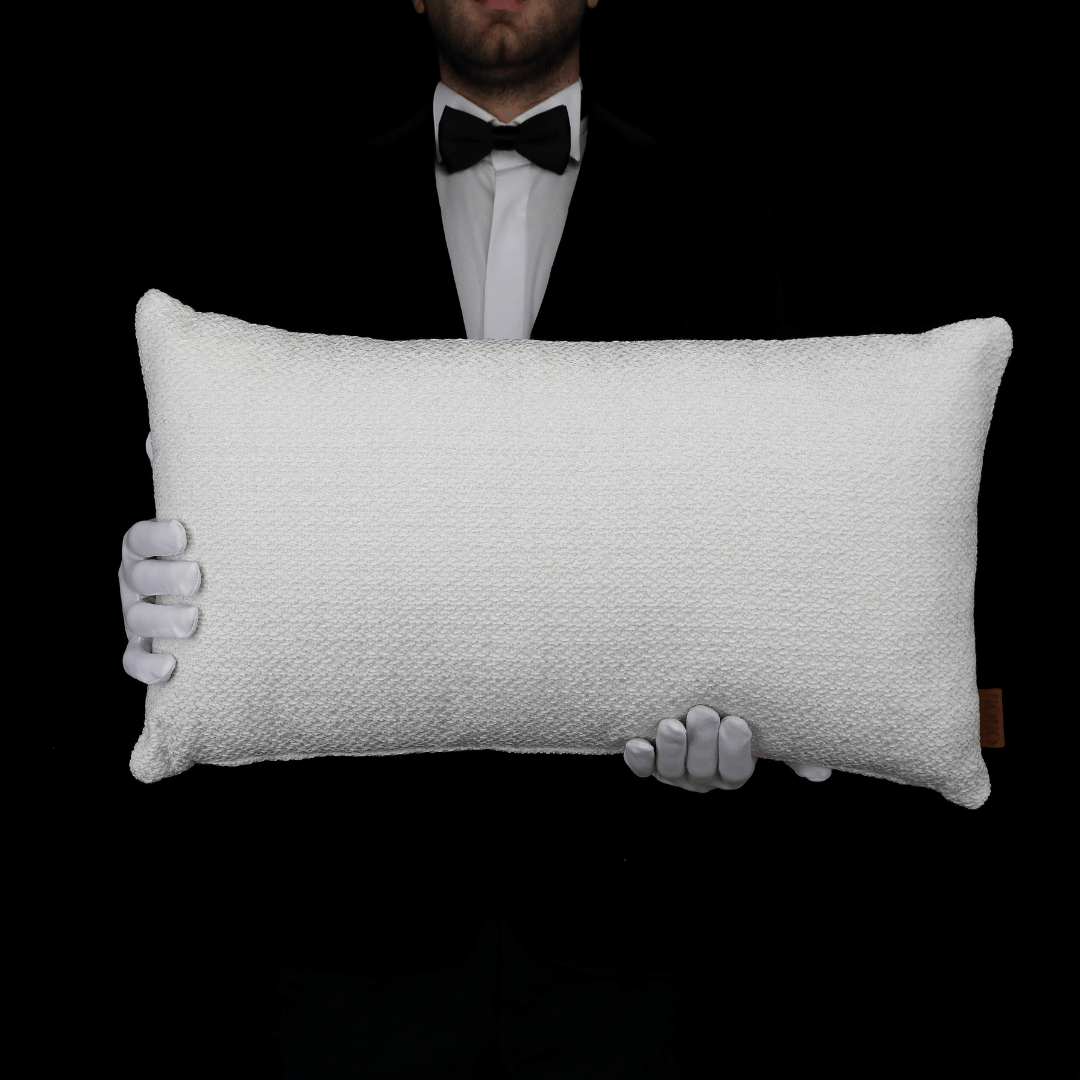 Mira Beyaz Akrilik Pamuklu Keten 35*65 Biyeli Kırlent, İç Dolgusu Dahildir.