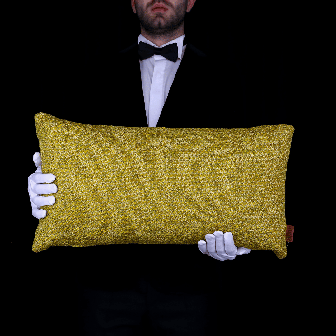 2 Adet 45*45 Mira (KTF02179) Gramajlı Dokuma Modern Kalın Dokulu Akrilik, Pamuk Keten Sarı Döşemelik Kumaştan Kenarları 5cm Façalı Dekoratif Kare Kırlent