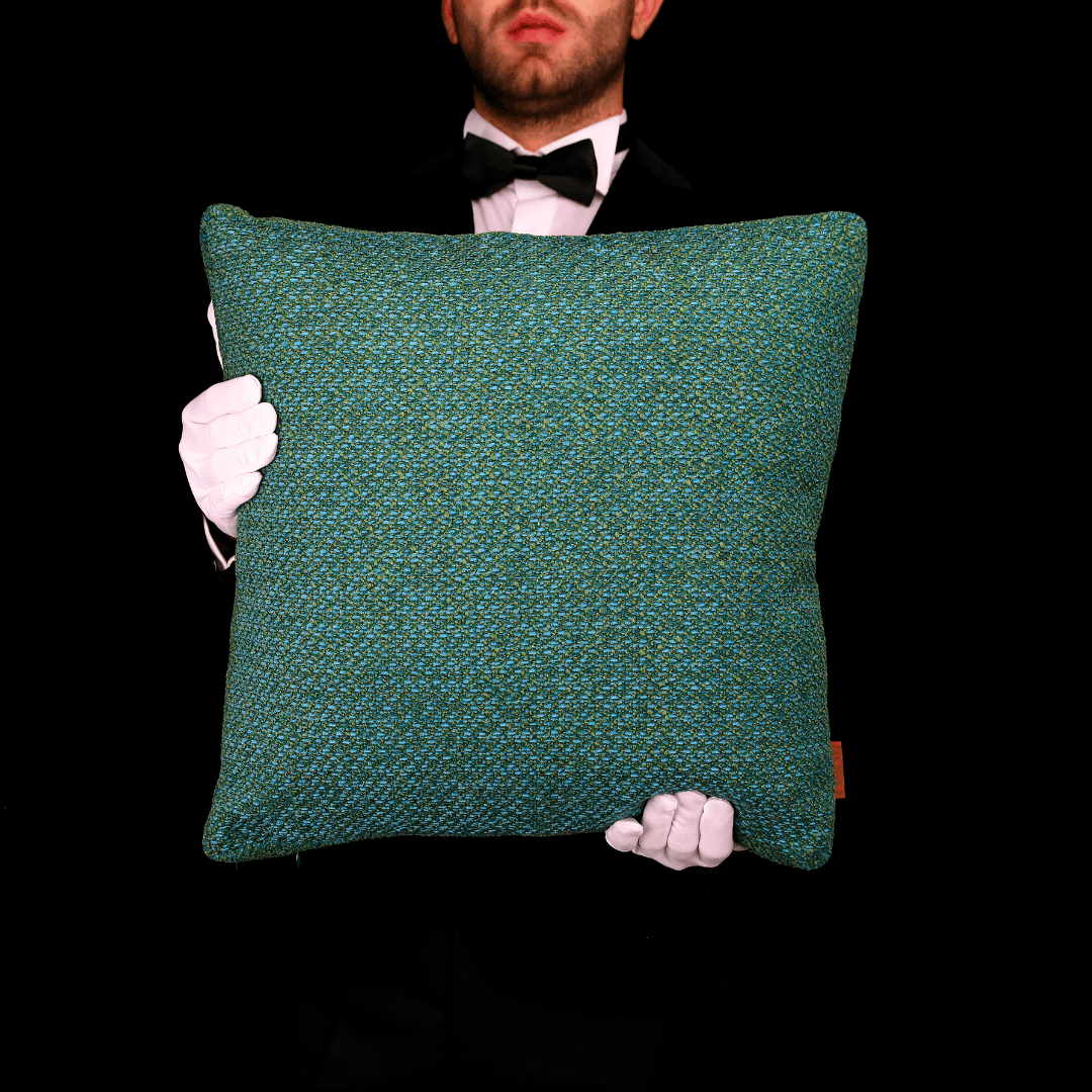 2 Adet 45*45 Mira (KTF02181) Gramajlı Dokuma Modern Kalın Dokulu Akrilik, Pamuk Keten Yeşil Döşemelik Kumaştan Kenarları 5cm Façalı Dekoratif Kare Kırlent