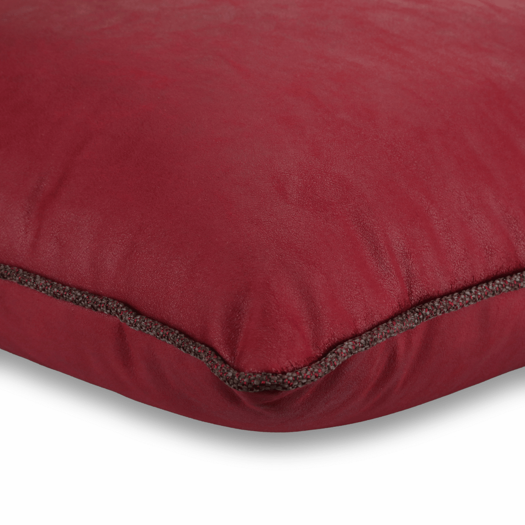 Nara Kırmızı Modern Keten & Nubuk Kombin 50*50 Biyeli Kırlent, İç Dolgusu Dahildir.