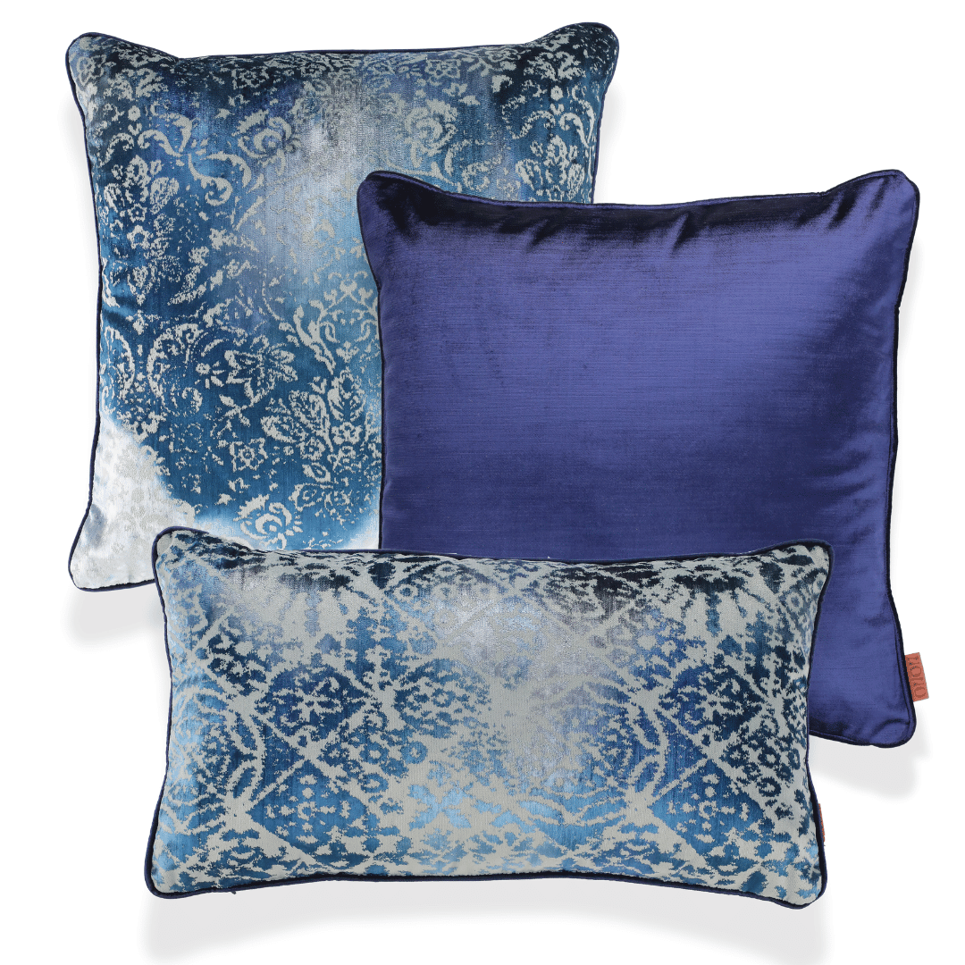 "Oliva & Aspen" Gri & Lacivert Kadife İÇ DOLGUSU DAHİL 3'lü Dekoratif Kırlent Seti