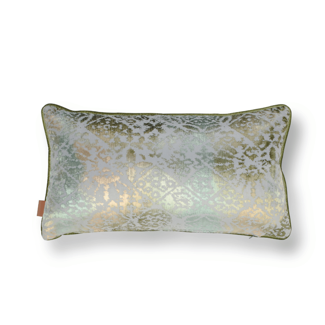 "Oliva Geo" Gri zemin üzerine renkli detaylarıyla dikkat çeken geometrik motiflerin, güncel renklerle yorumlandığı, eşsiz dokularıyla karşı konulmaz kadife ipliklerin yüksek sıklıkta dokunan zarif YEŞİL tonlarındaki renk , her iki yüzünde de aynı kumaş kullanılan ve bu sayede size kolaylık katacak Döşemelik Kumaş ile "ASPEN" serisi kadife kumaştan oluşan biyeleriyle 35*65 Dekoratif Dikdörtgen Bel Kırlenti, İÇ DOLGUSU DAHİLDİR. (İç Dolgusu Ölçüsü 40*70)