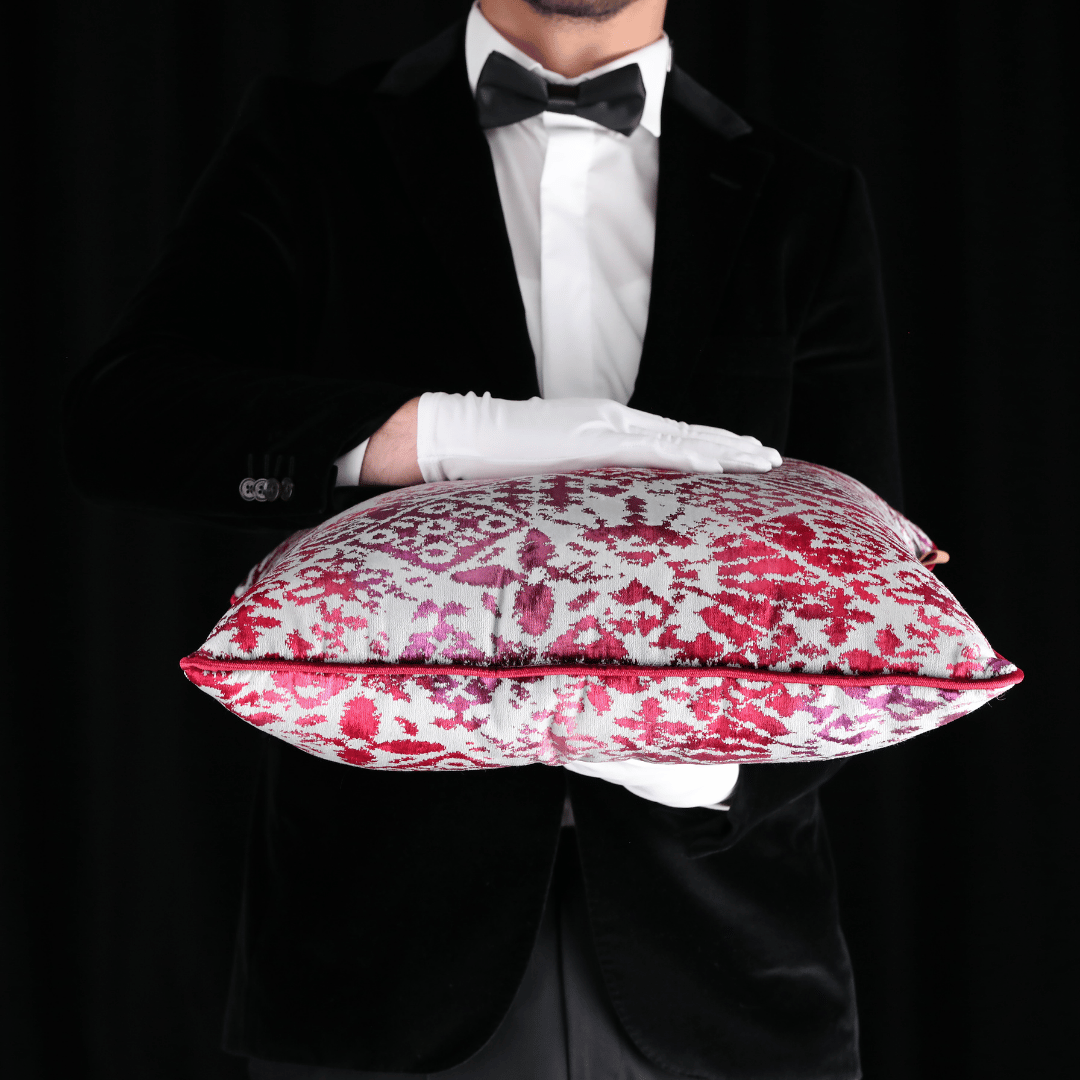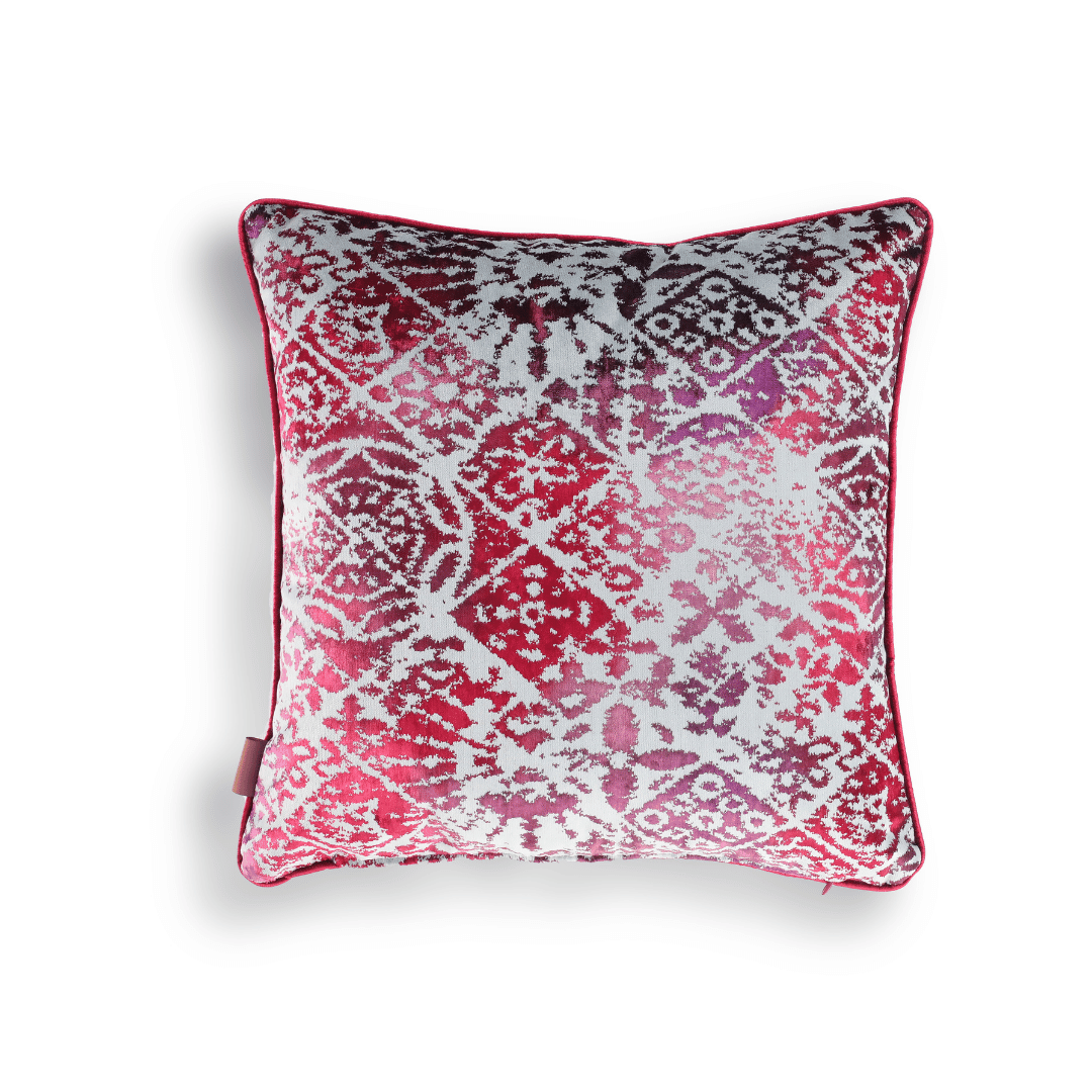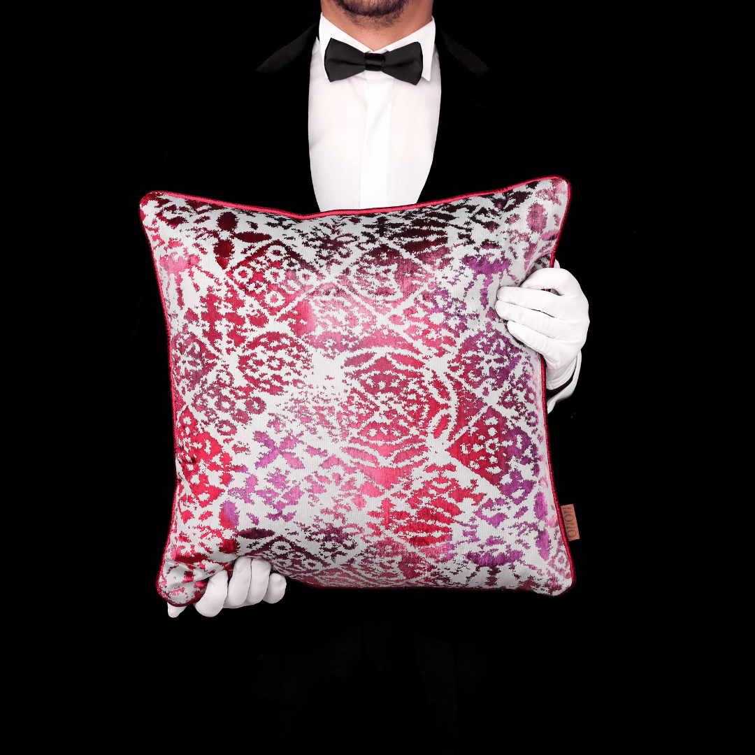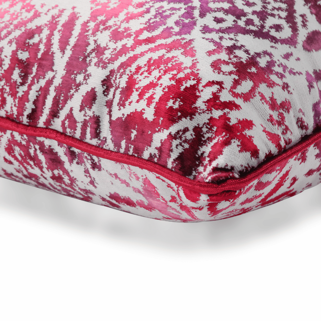 Oliva Geo Renkli Kadife 50*50 Biyeli Kırlent Kırmızı, İÇ DOLGUSU DAHİLDİR.