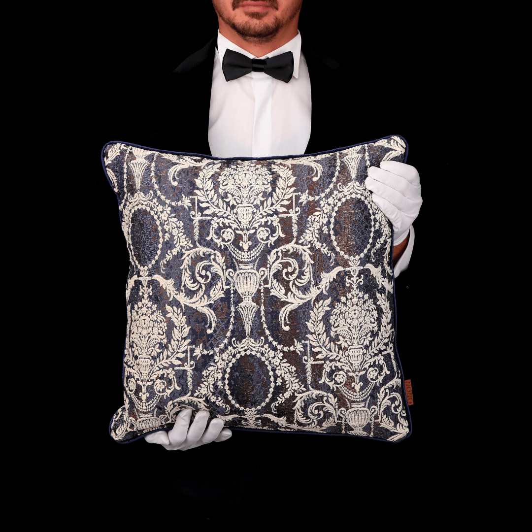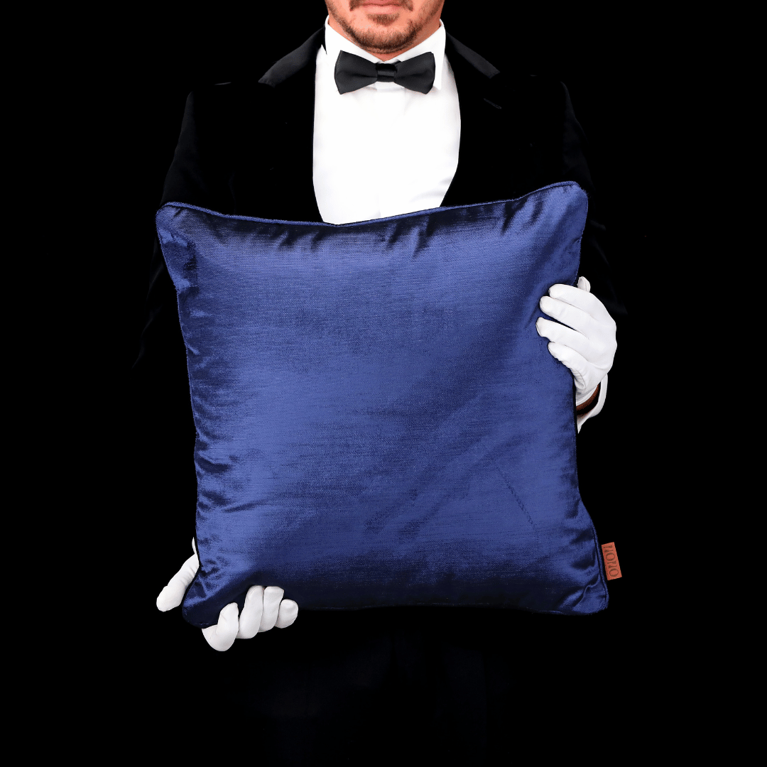 1 Adet Aspen Flamlı Parlak Dokuma Kadife 50*50 Biyeli Kırlent Lacivert :%100 Pes (550gr/m)