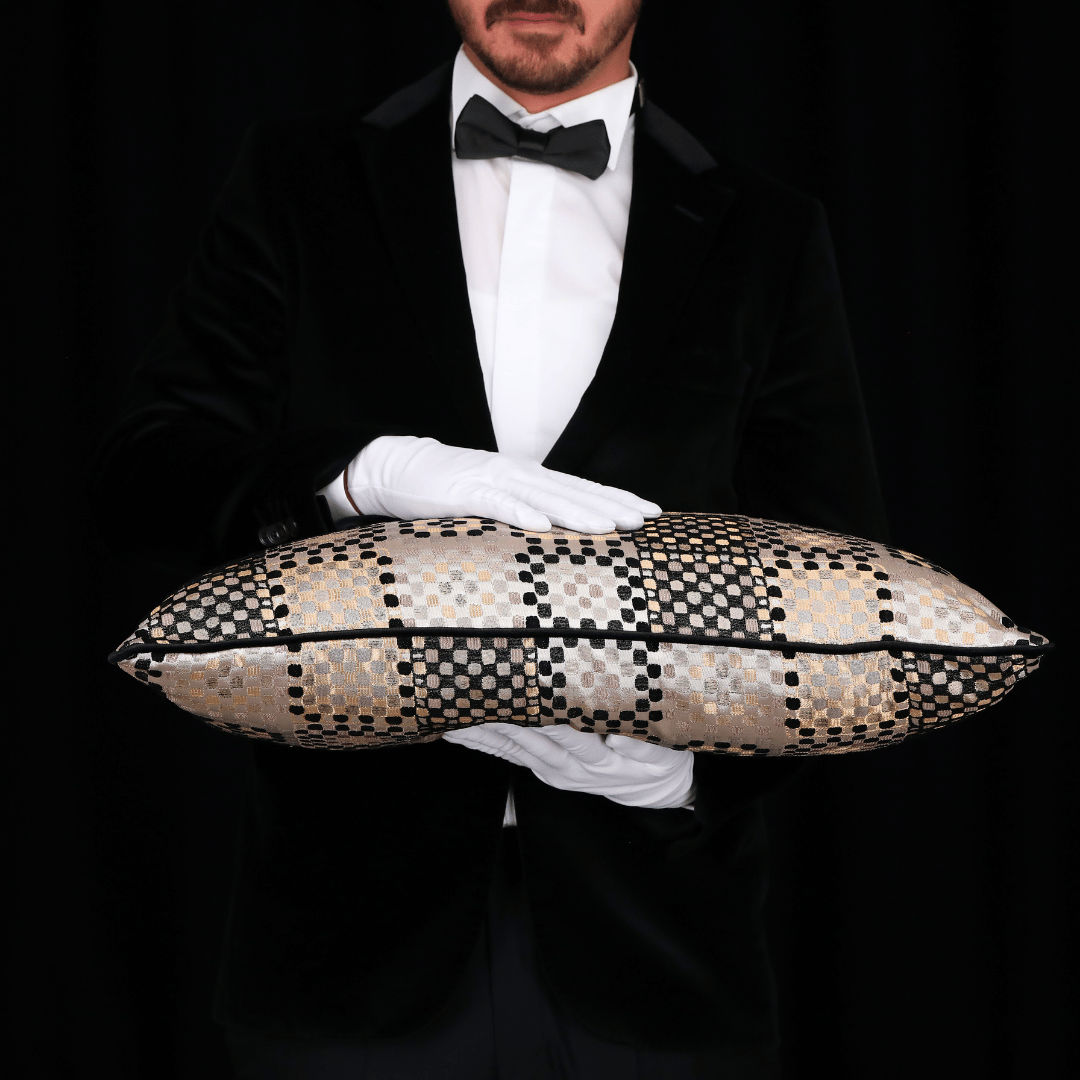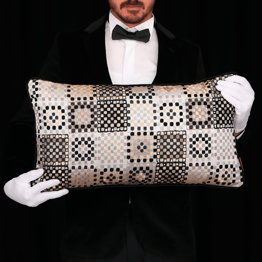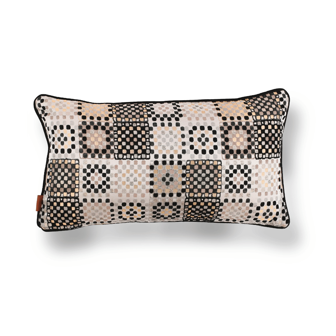 "Vicente" Geçmişten günümüze ulaşan eşsiz Benek motfileri, kendi tekstil lisanıyla yorumlayarak çok özel bir koleksiyonda biraraya gelmiş büyük bir emek ve incelikle hazırlanan Dokuma Viskon sarı & vizon parlak zemin üzerine kabartmalı şönil SİYAH benek desenli dokulu döşemelik kumaştan kenarları Siyah Biyeli 35*65 Dekoratif Dİkdörtgen Bel Kırlenti, İÇ DOLGUSU DAHİLDİR. (İç Dolgusu Ölçüsü 40*70)