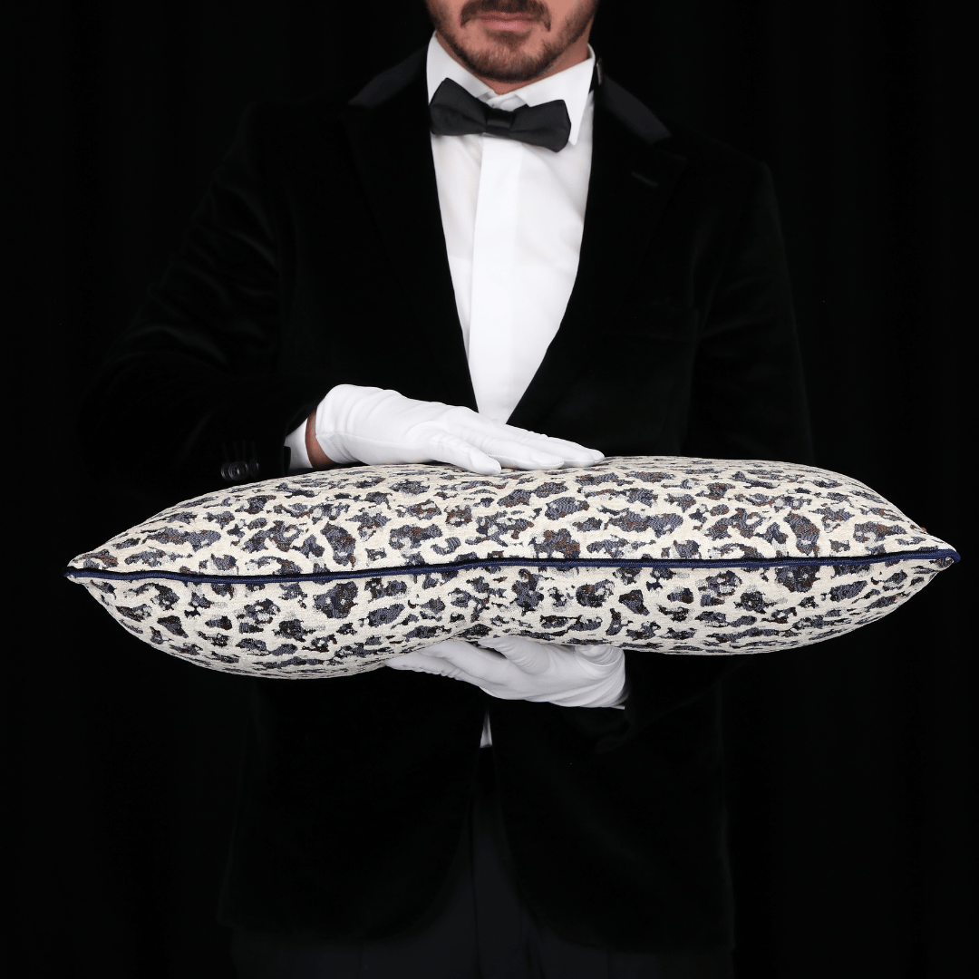 "Vicente" Geçmişten günümüze ulaşan eşsiz leopar motfileri, kendi tekstil lisanıyla yorumlayarak çok özel bir koleksiyonda biraraya gelmiş büyük bir emek ve incelikle hazırlanan Dokuma Viskon Lacivert & Kahve Parlak Zemin Üzerine Kabartmalı Şönil KREM leopar Desenli Dokulu Döşemelik Kumaştan kenarları lacivert Biyeli 35*65 Dekoratif Dikdörtgen Bel Kırlenti, İÇ DOLGUSU DAHİLDİR. (İç Dolgusu Ölçüsü 40*70)