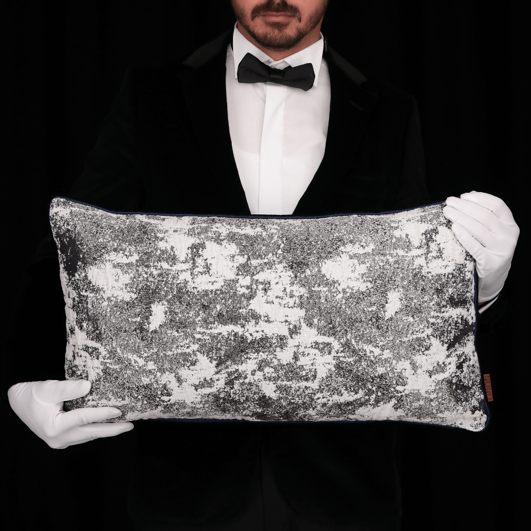 "Vicente" Geçmişten günümüze ulaşan eşsiz kabartma motfileri, kendi tekstil lisanıyla yorumlayarak çok özel bir koleksiyonda biraraya gelmiş büyük bir emek ve incelikle hazırlanan Dokuma Viskon Lacivert & Gri Parlak Zemin Üzerine Kabartmalı Şönil BEYAZ Desenli Dokulu Döşemelik Kumaştan kenarları lacivert Biyeli 35*65 Dekoratif Dikdörtgen Bel Kırlenti, İÇ DOLGUSU DAHİLDİR. (İç Dolgusu Ölçüsü 40*70)